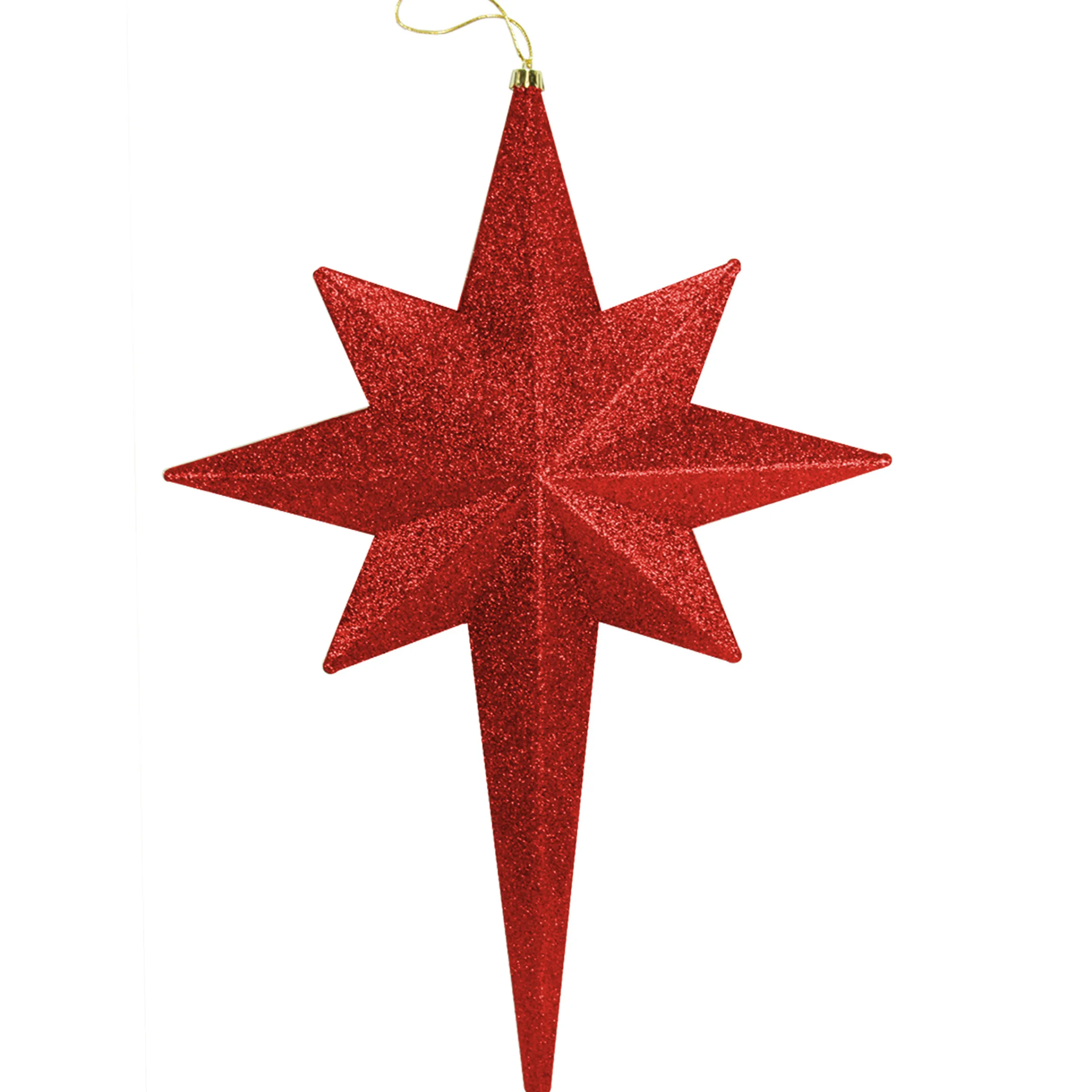 The Blend Of Elegance And Gloss Is This Red Hot-Hued Bethlehem Star That Features A Glitter Finish. The Shimmering Accents Add Glam To The Piece, Making It An Ideal Decor Item To Start With, This Festive Season. Fret No More About Hanging As It Comes Ready-To-Hang On A Gold Cord.