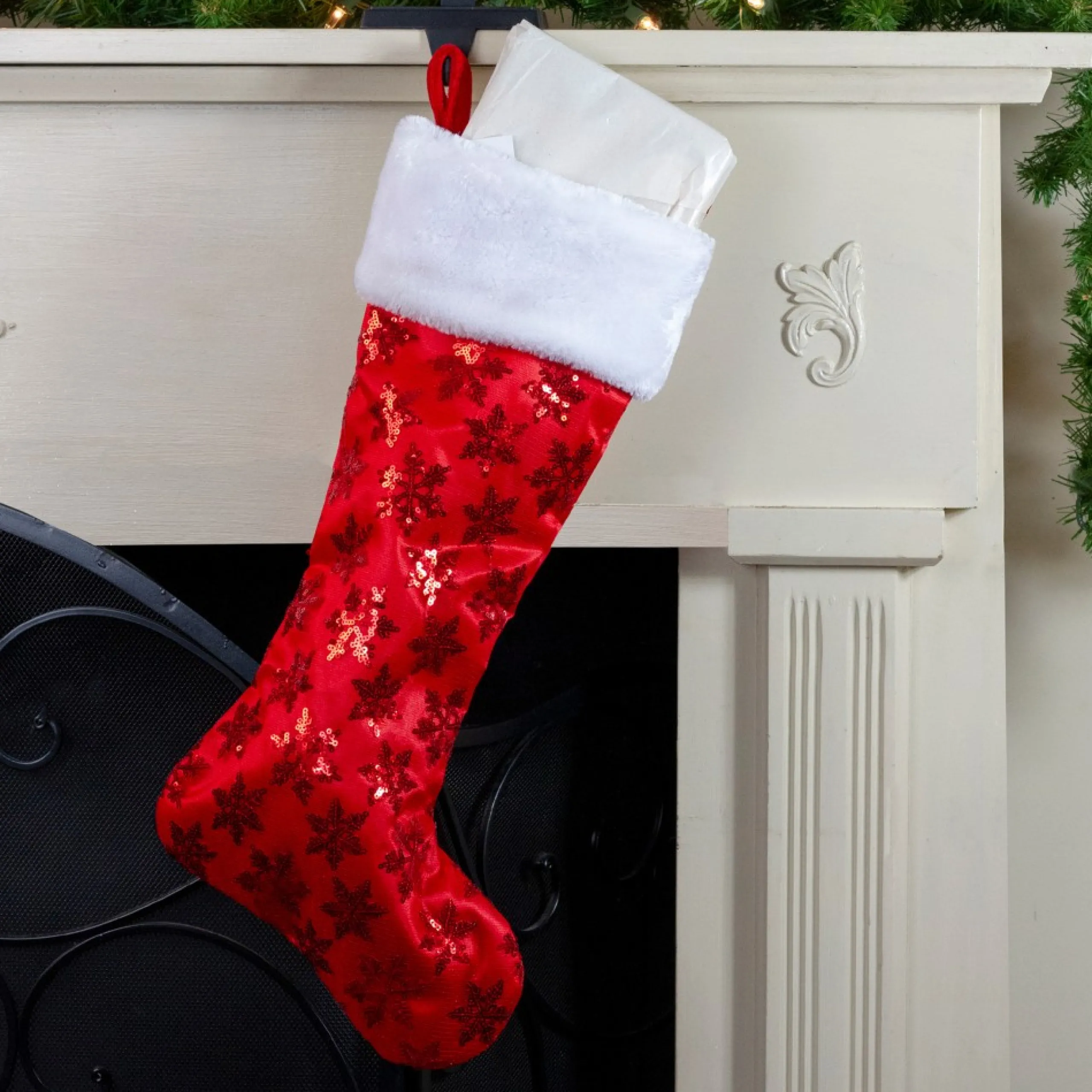 Stockings*Northlight 20.5″ Red And White Sequin Snowflake Christmas Stocking
