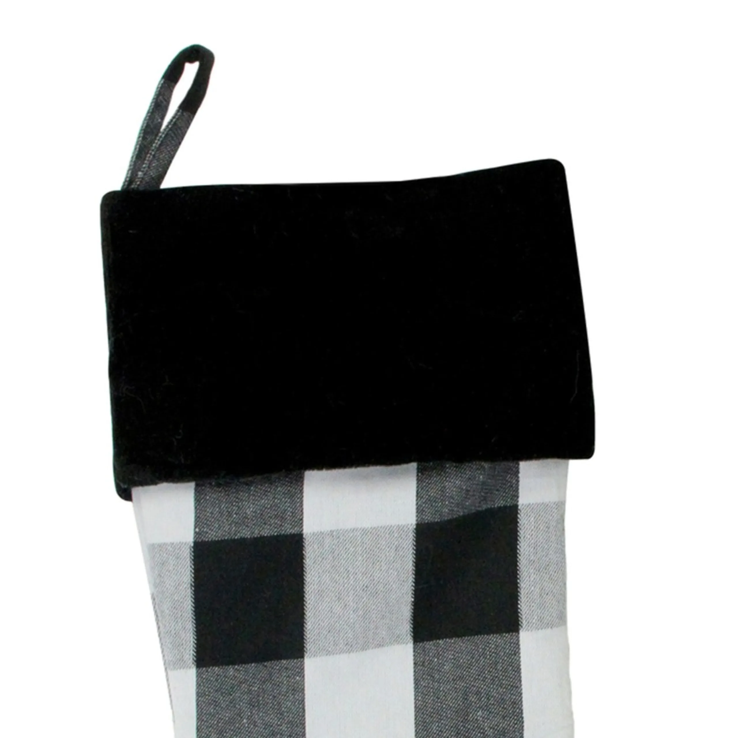 Stockings*Northlight 20″ White And Black Buffalo Plaid Christmas Stocking With Cuff