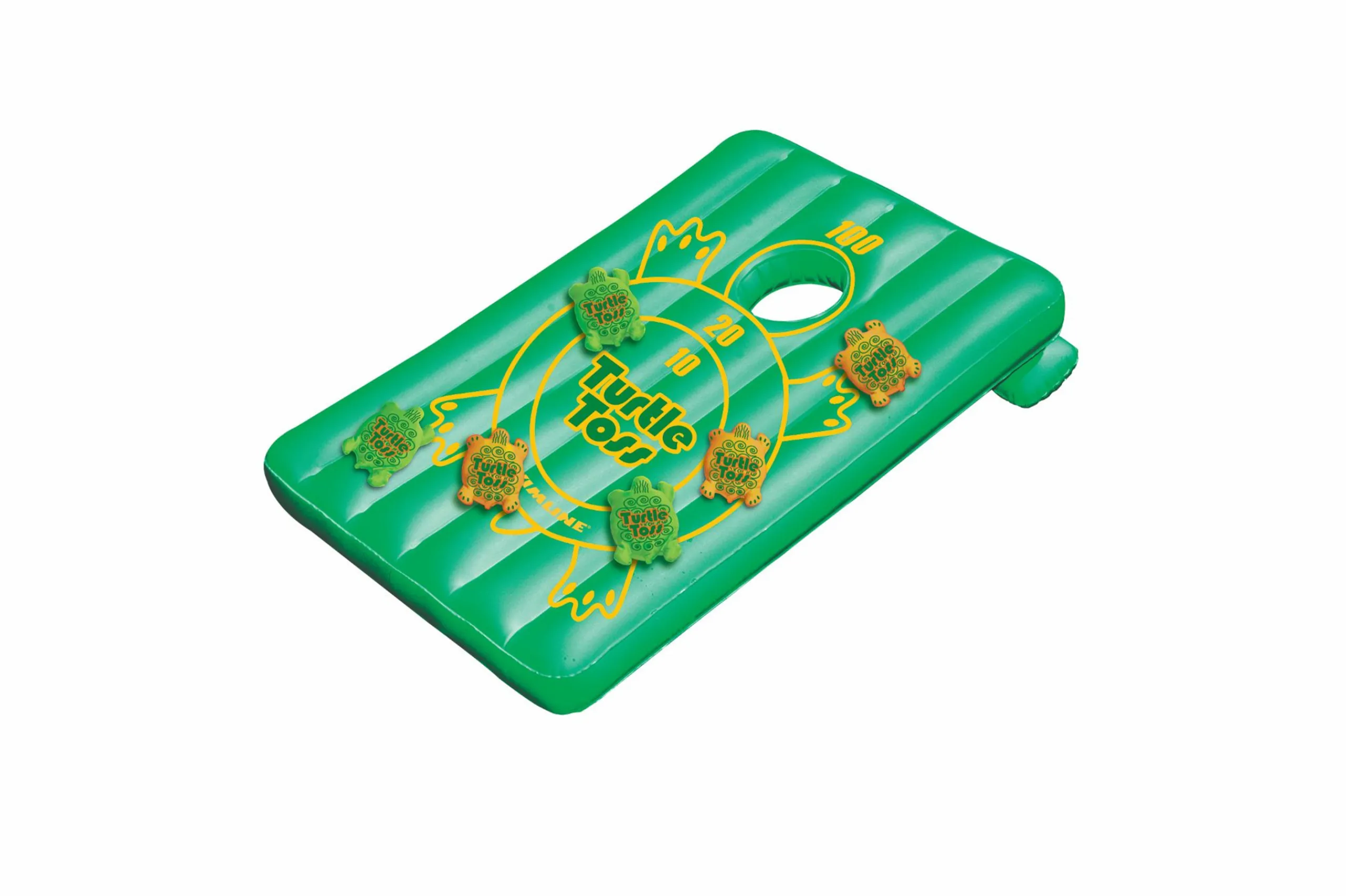 Have Fun In The Sun With This Inflatable Floating Pool Game. This Awesome Game Is Green With Turtle Bean Bags That Will Allow You To Enjoy Your Pool For Hours And Days To Come To This Summer With Your Little One! Take Your Pool Fun Up A Notch With This Inflatable Toss Game Set. It Is Made For Extreme Comfort And Durability.