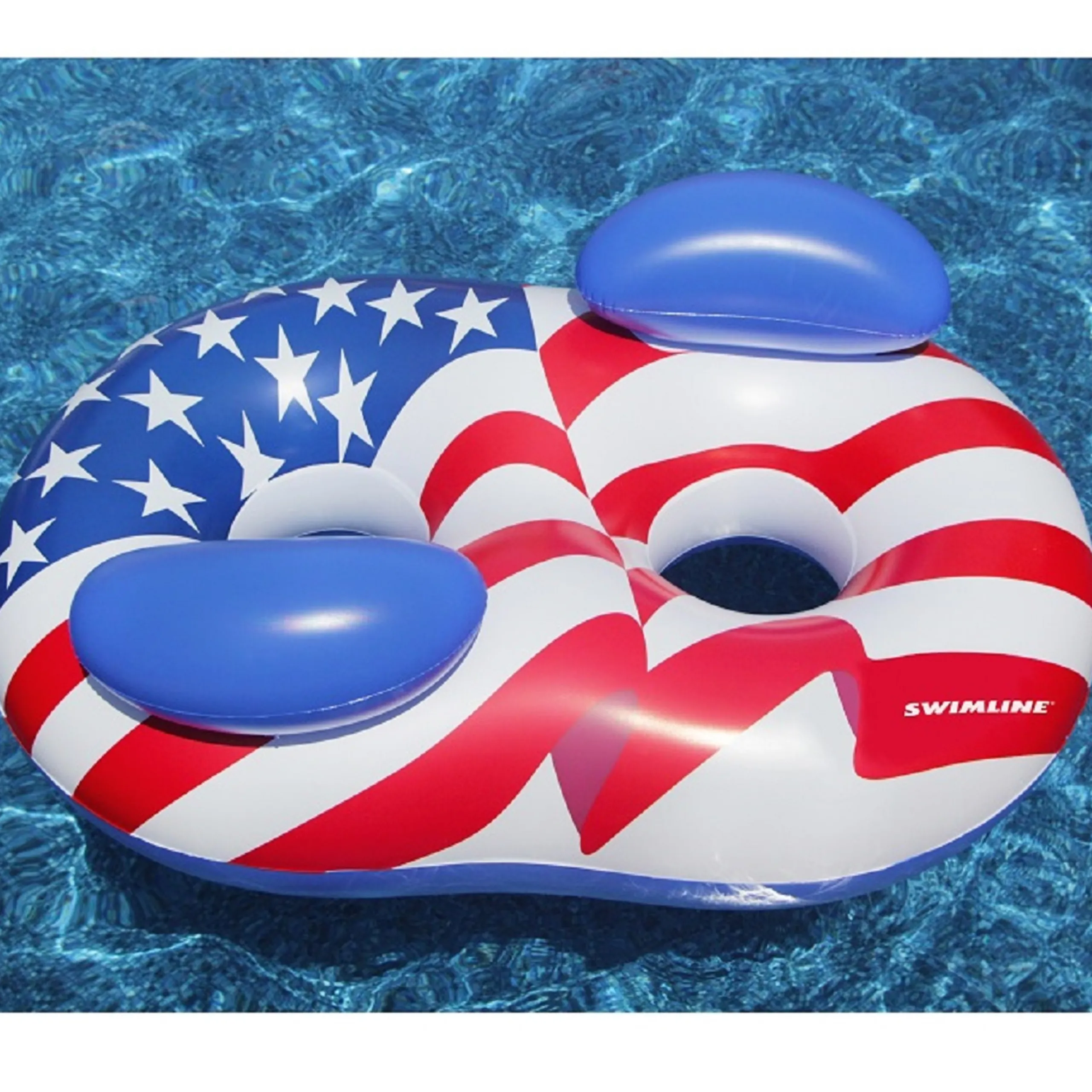 Swim Central 65″ Inflatable Patriotic American Flag Duo Circular Swimming Pool Lounger