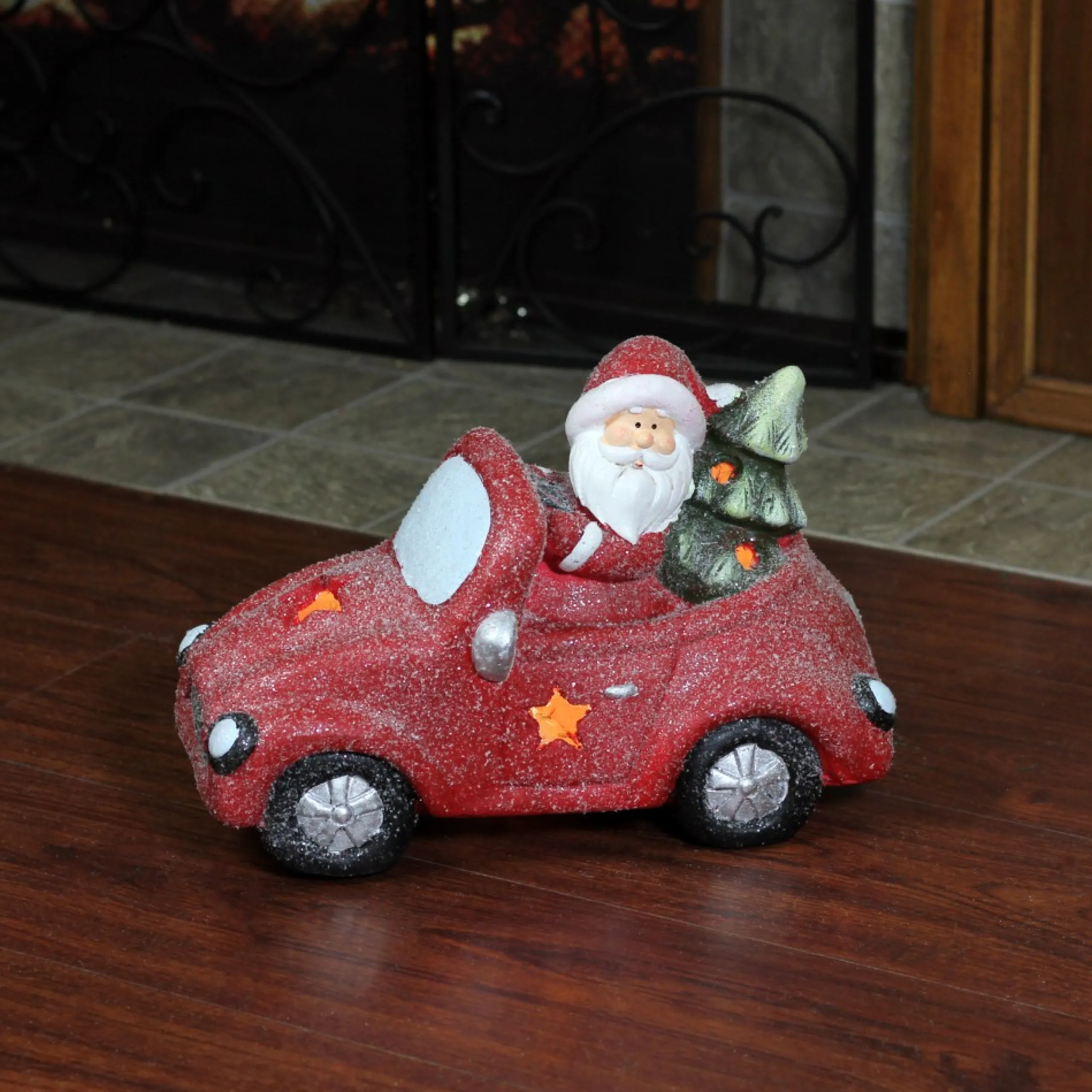 Table Top Pieces*Northlight 14″ Red Led Lighted Magnesia Glitter Car With Santa Claus Christmas Tabletop Decor