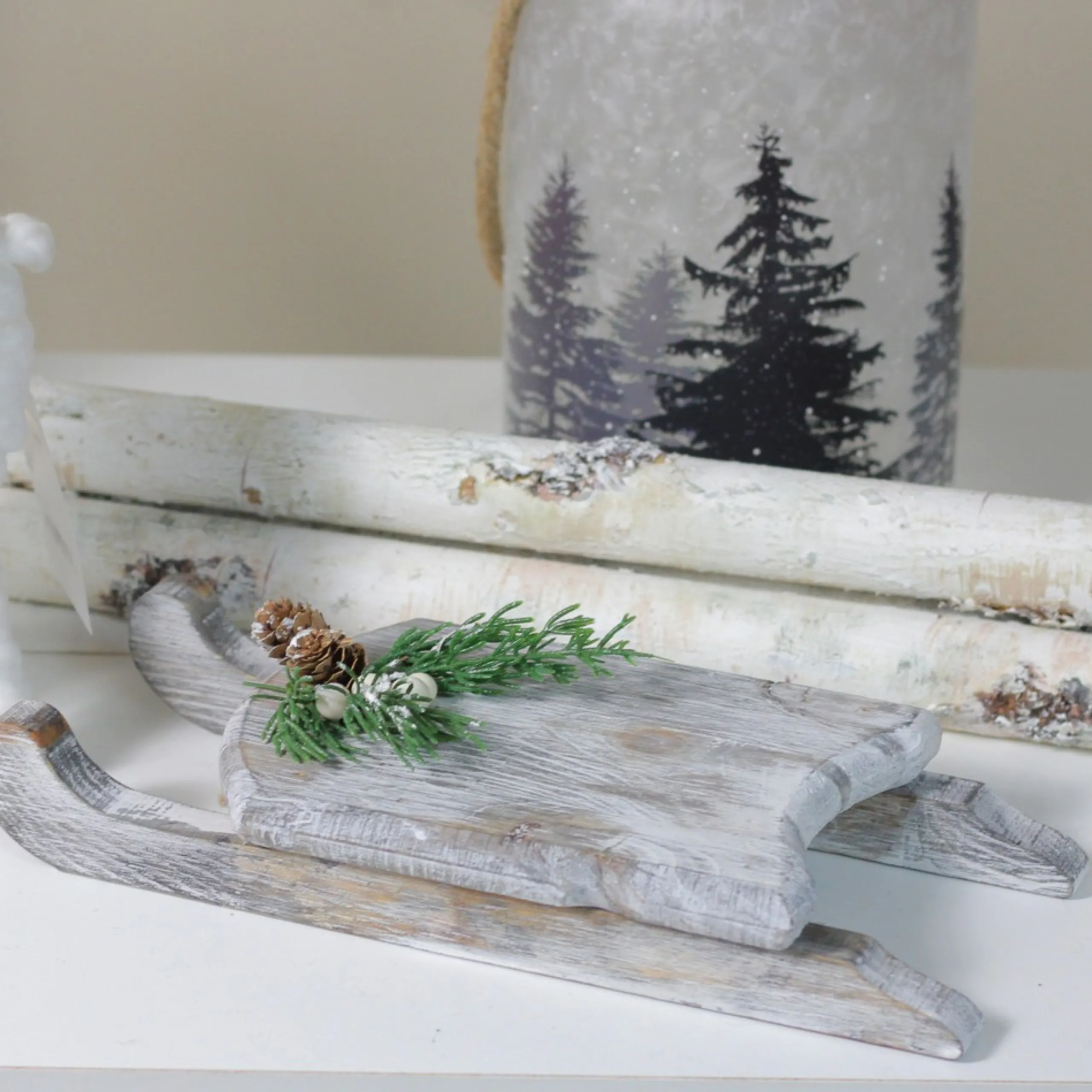 Grey Distressed Finish Sled Decoration