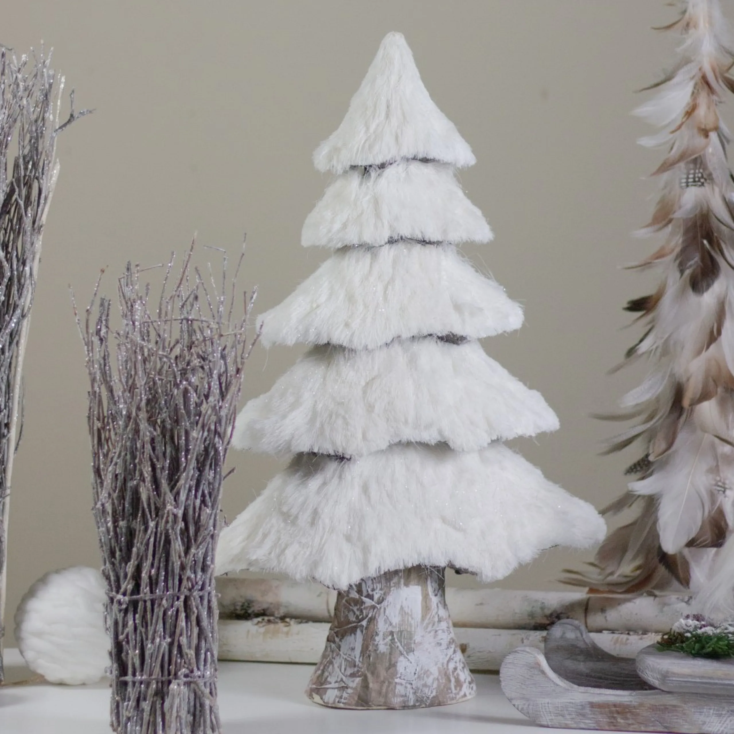 Table Top Pieces*Northlight 17.25″ White Faux Fur Birch Tree Christmas Decoration