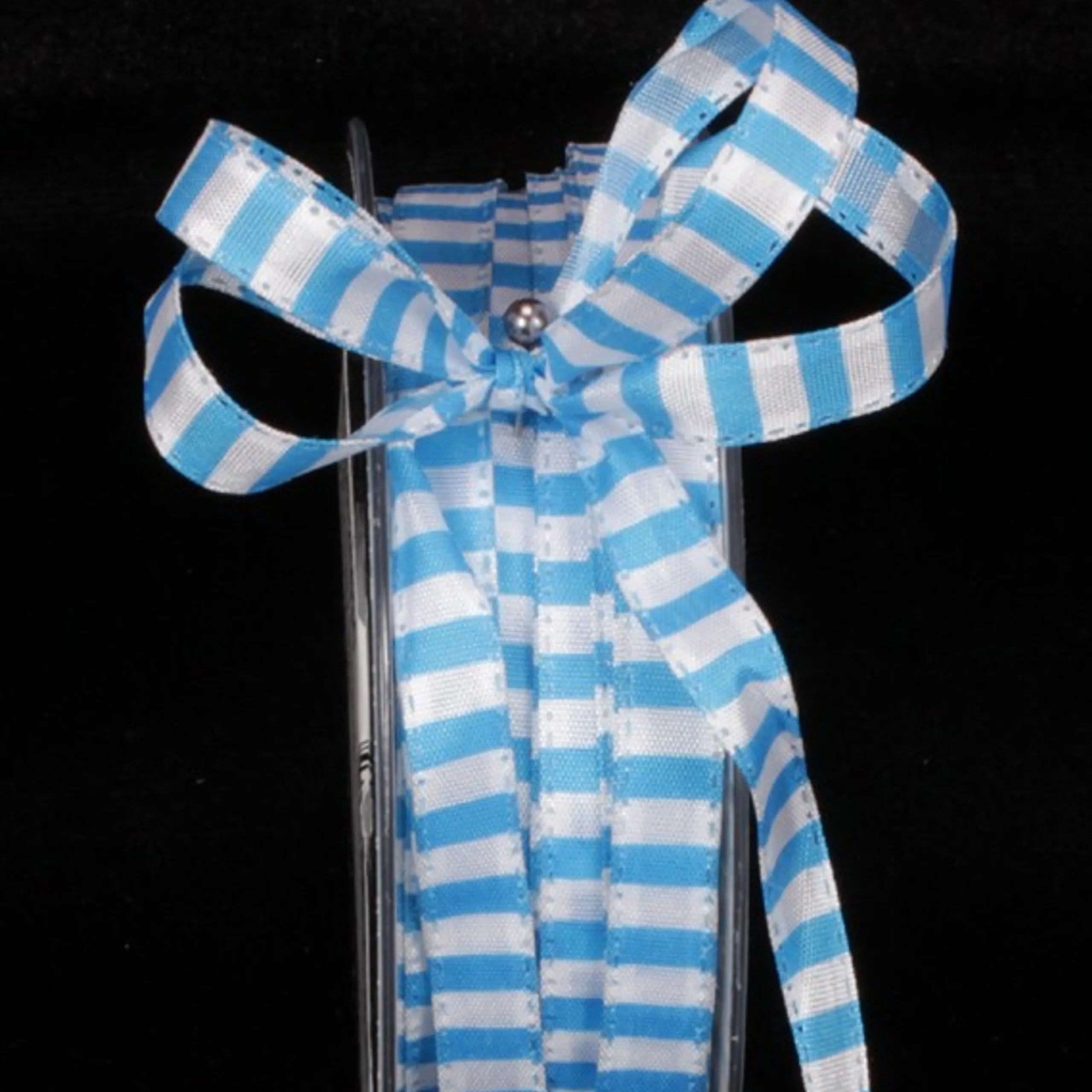 The Ribbon People Baby Blue And White Striped Capri Wire Edged Craft Ribbon 0.25″ X 110 Yards