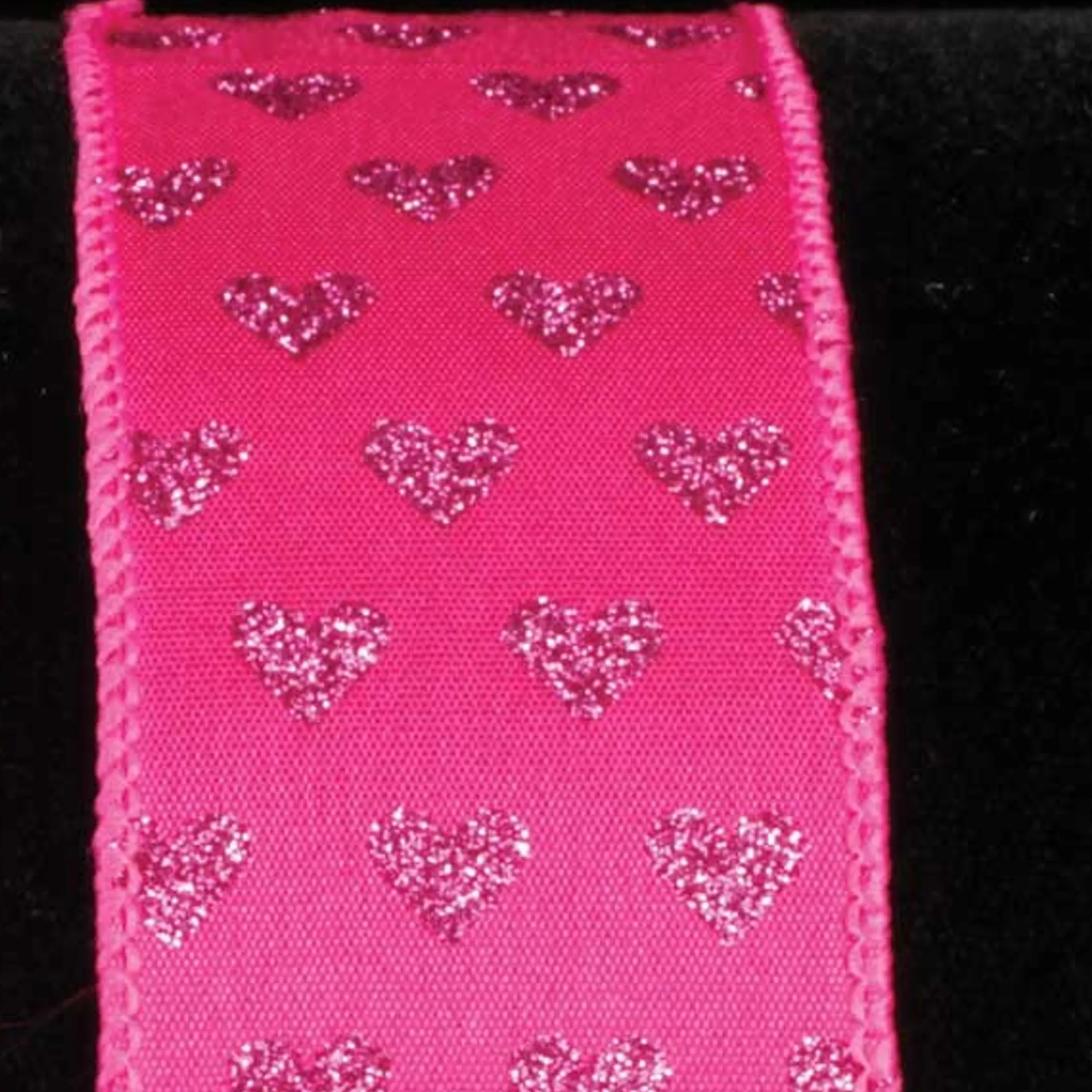 The Ribbon People Pink Sparkling Hearts Romantic Wired Craft Ribbon 1.5″ X 40 Yards