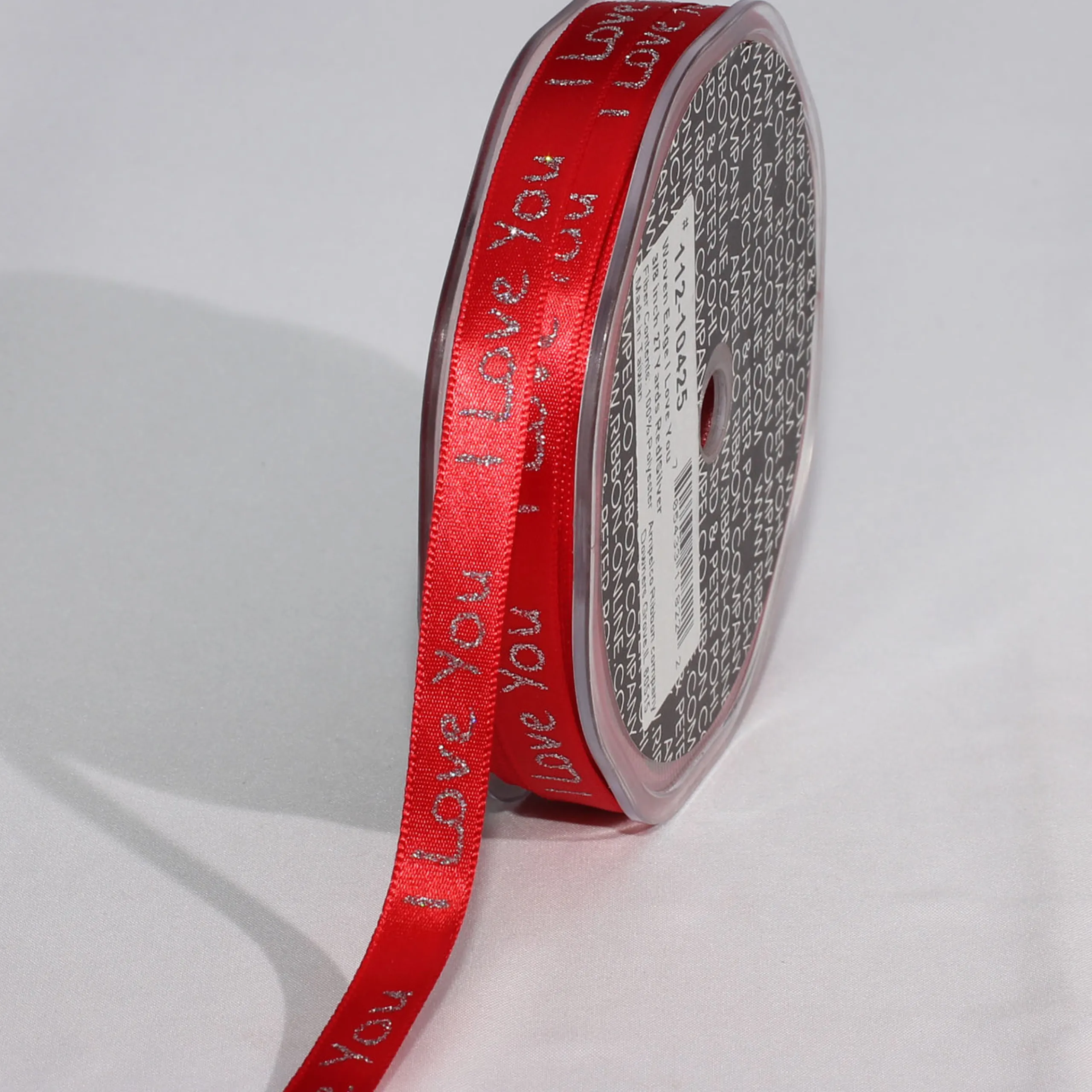 The Ribbon People Red With Silver Glitter “I Love You” Woven Edge Craft Ribbon 0.25″ X 108 Yards