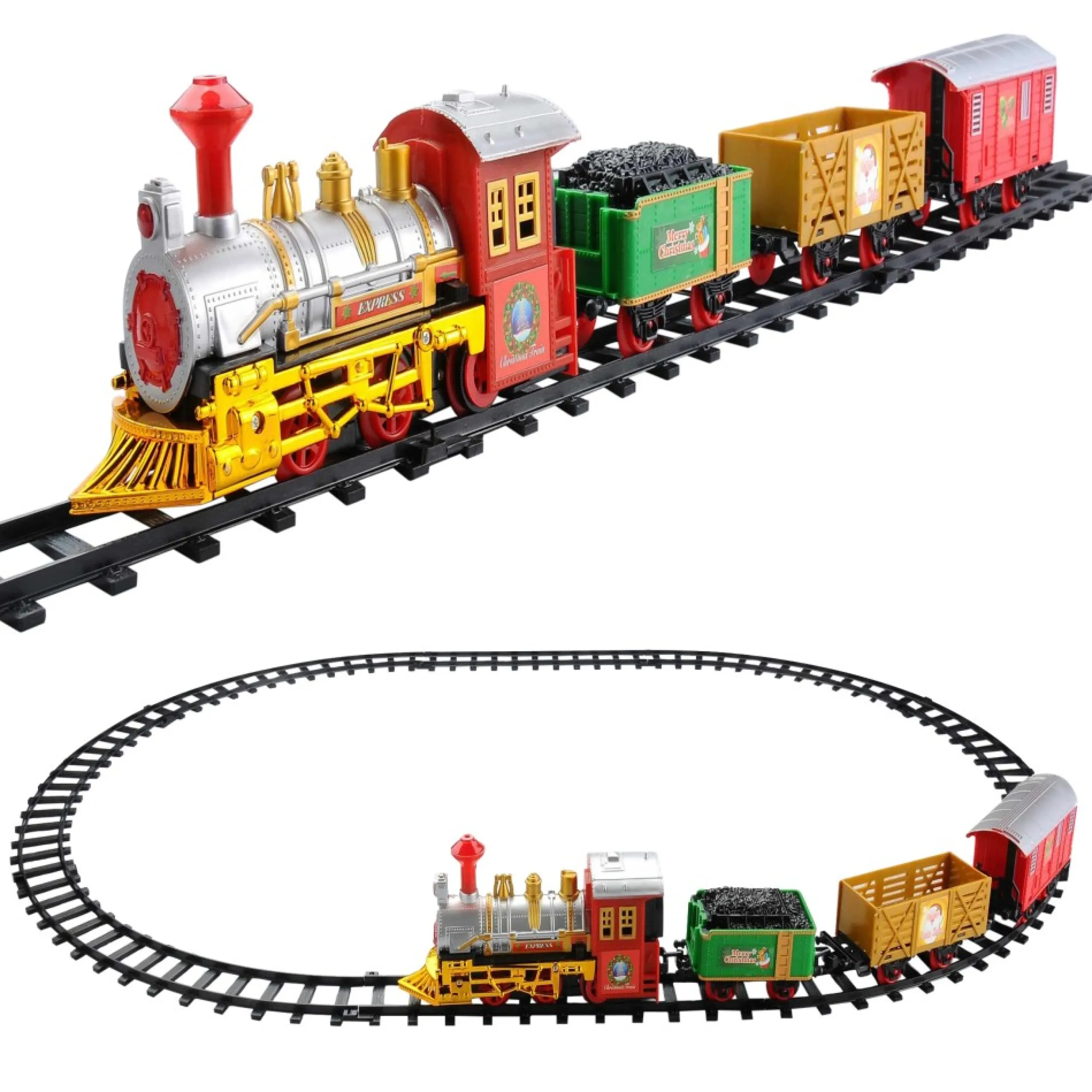 All Aboard The Christmas Express! Enjoy The Wonder And Excitement That Shines Through A Child’s Eyes As They Watch This 12 Piece Train Set Circle Around Your Christmas Tree. Listening To The Realistic Sounds Will Transport You Right To The Train Yard.