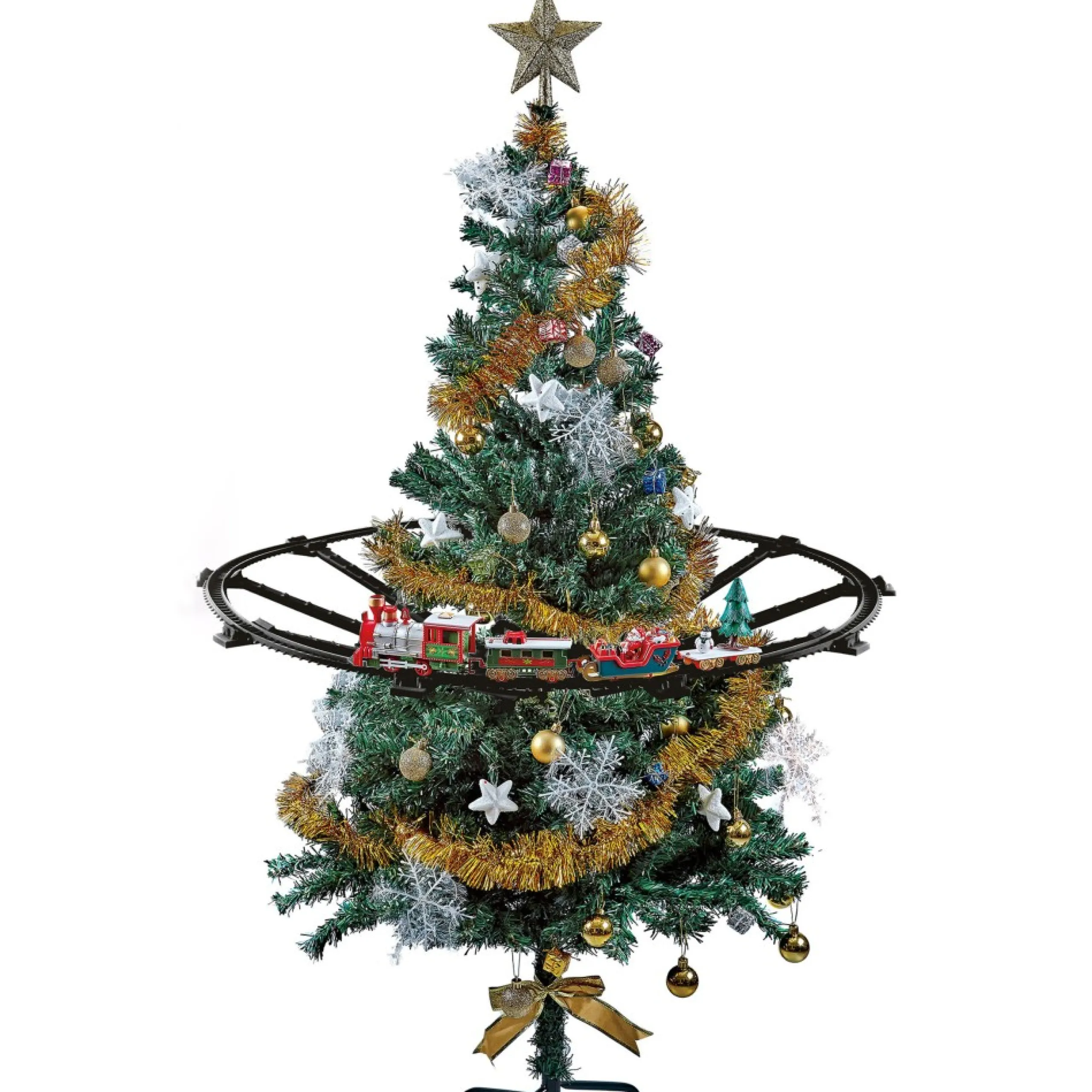 All Aboard! This Delightful 31-Piece Christmas Tree Train Set Will Bring Endless Joy To You This Holiday Season. Watch This Festive Train Set Circle Around Your Christmas Tree While It Plays Jingler Bells. Quick And Easy To Assemble, This Train Set Can Be Placed On The Floor Around Your Christmas Tree Or Mounted On The Tree Trunk.