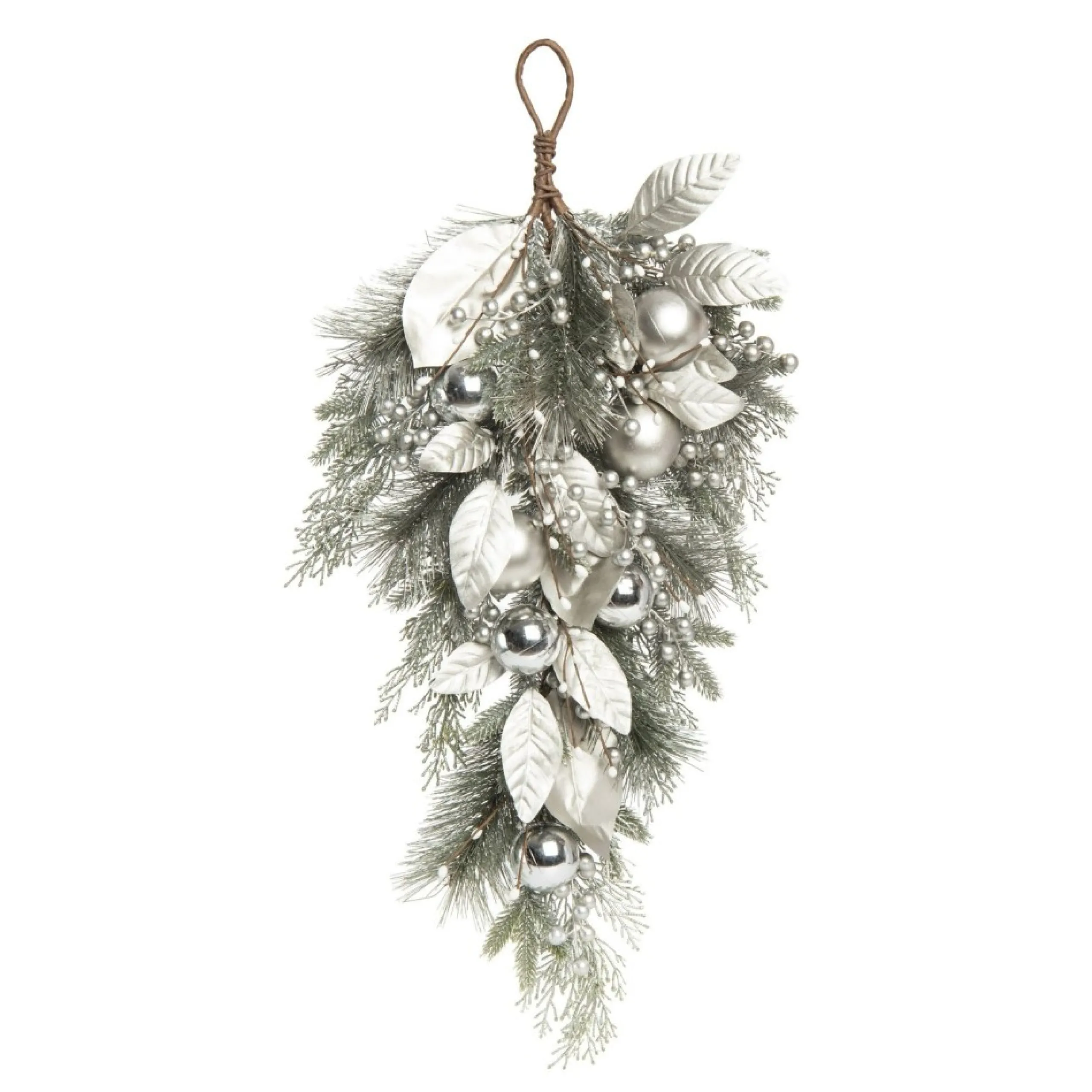 Unlit Teardrops*Contemporary Home Living 29″ Silver And Green Artificial Christmas Teardrop Swag, Unlit