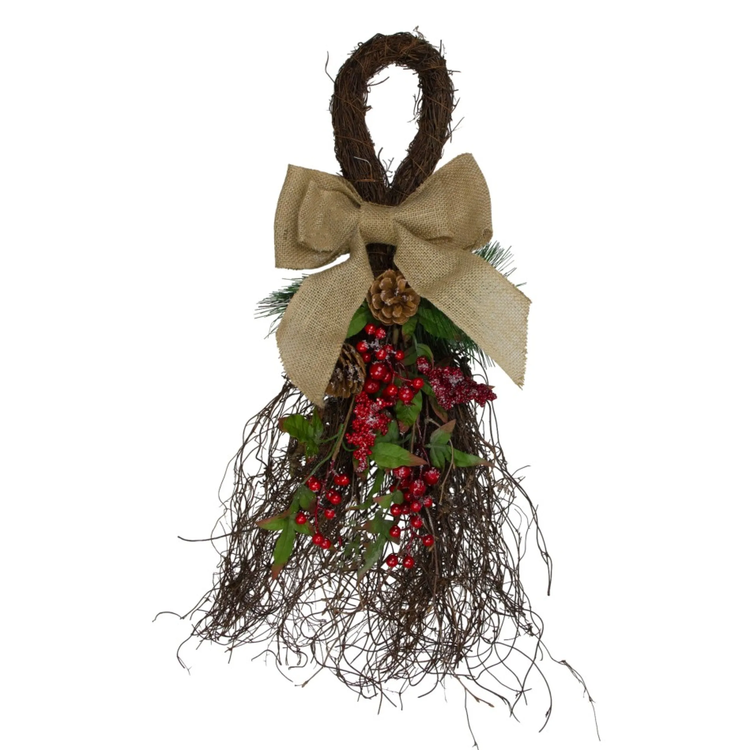 Unlit Teardrops*Northlight 24″ Iced Berries And Burlap Artificial Christmas Twig Teardrop Swag