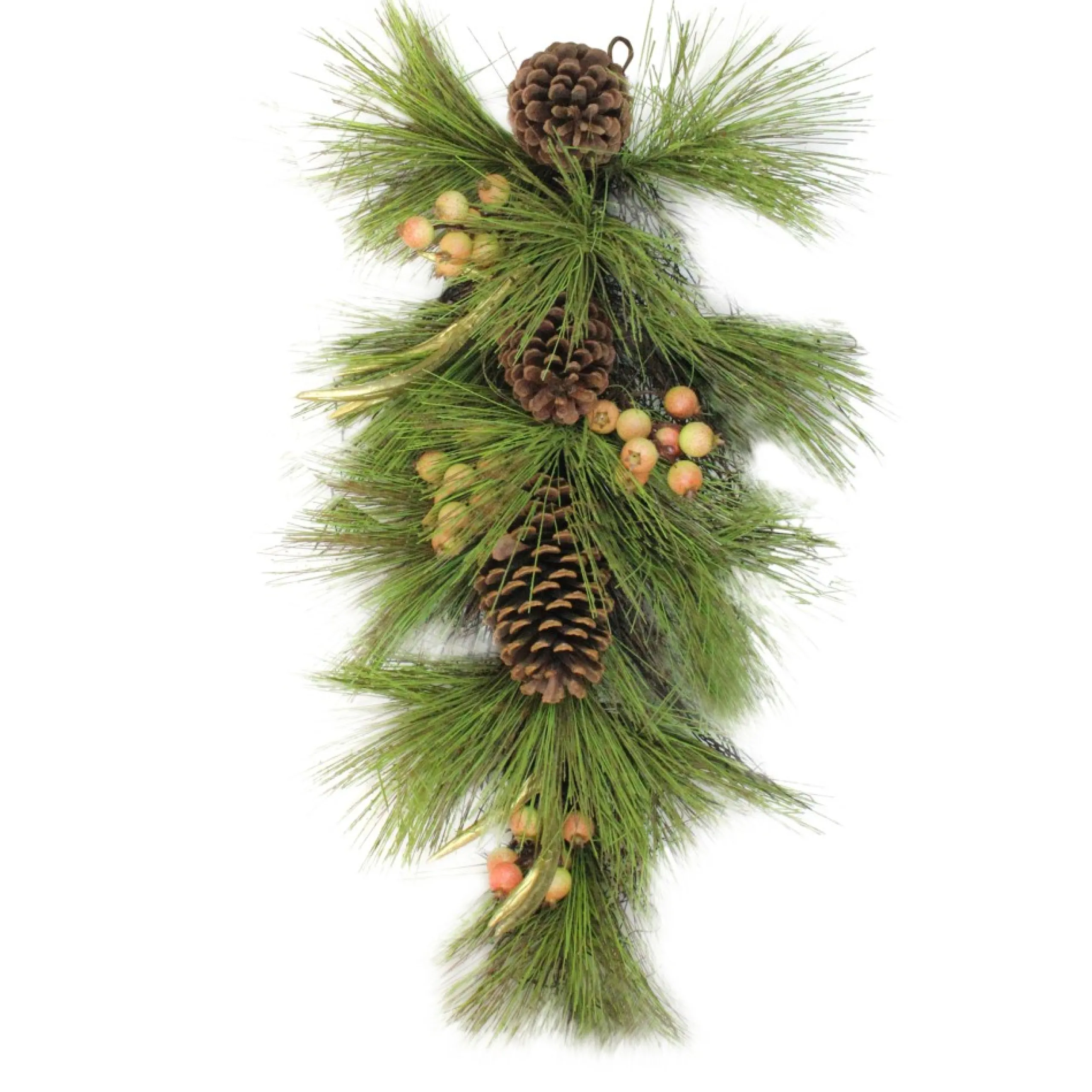 Unlit Teardrops*Northlight 30″ Pine Needles With Pinecones And Golden Antlers Artificial Christmas Teardrop Swag – Unlit