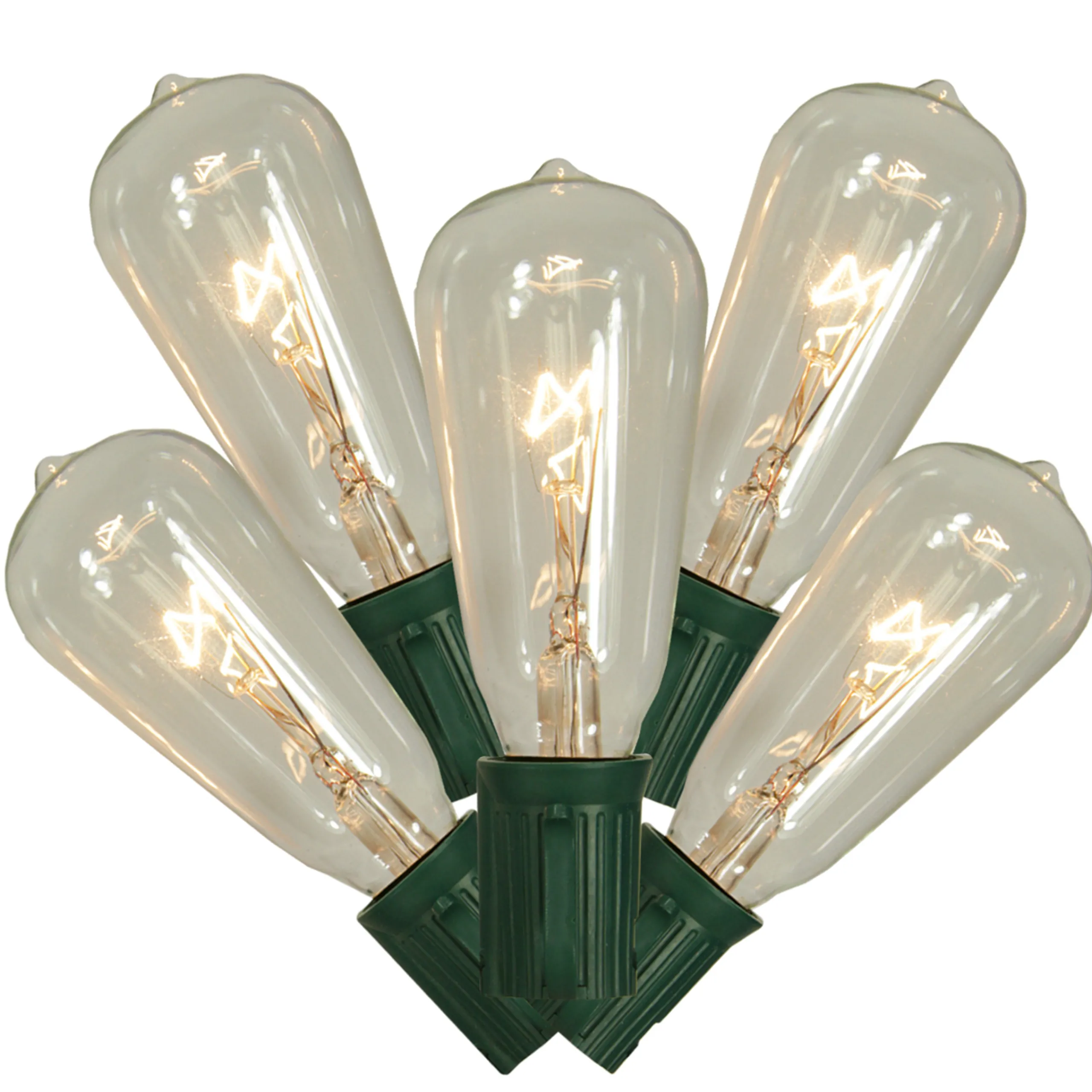 Vickerman 10-Count Clear And Green Transparent St40 Edison Style Patio Lights, 9 Ft Green Wire