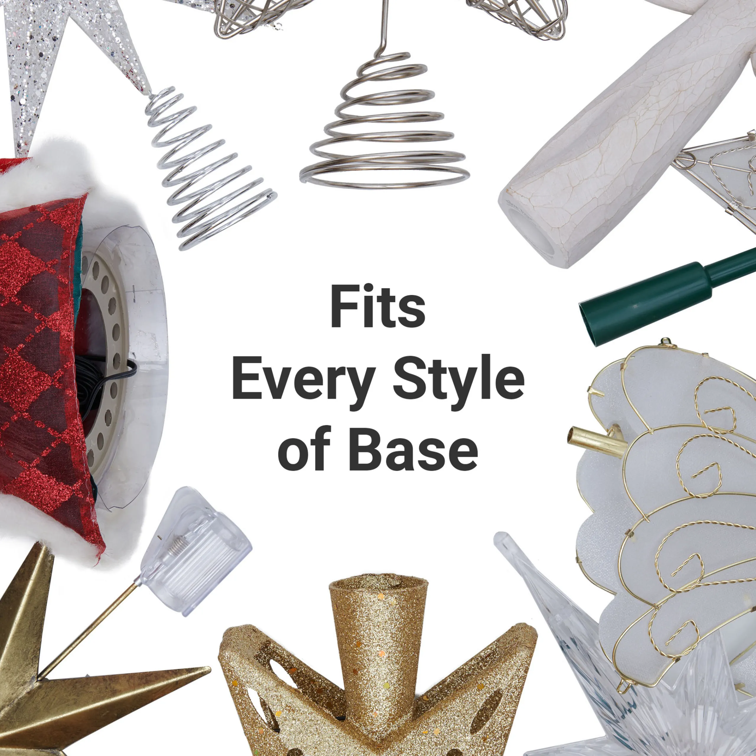 The Twist-On Tree Topper Holder Supports And Secures Nearly All Styles Of Tree Toppers. The Interchangeable Attachments Allow A Variety Of Configurations To Fit All Tree Topper Bases Including Posts, Spiral, Conical, Clamp, And Finial. The Twist On Support Rod Fits Tree Trunks Up To 1.25″ In Diameter, And Is Topped With A Pivoting Adjustment To Ensure Your Tree Topper Is Perfectly Level. Keep Your Precious Christmas Tree Topper Safe And Secure Year After Year.