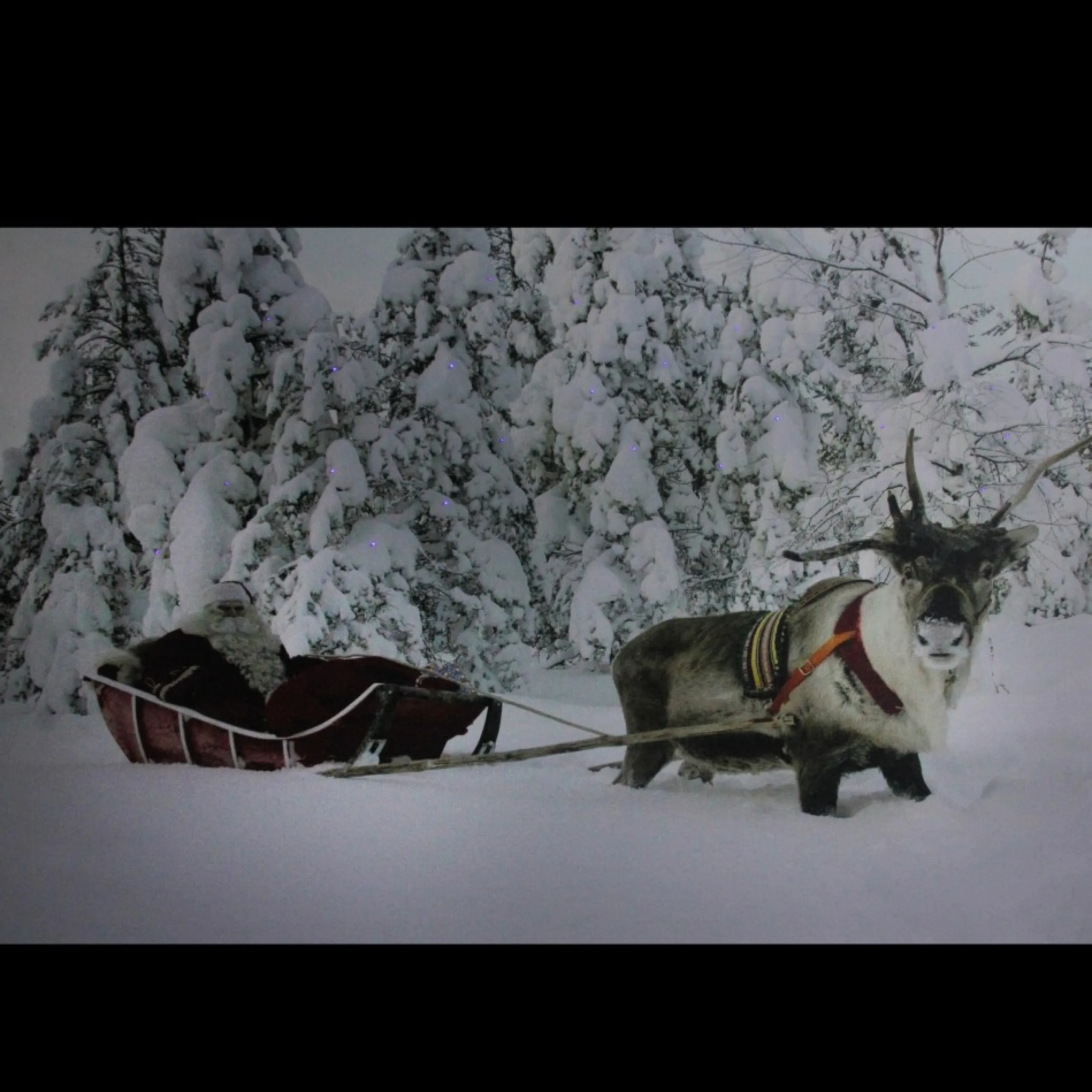 Canvas Features Santa Being Pulled In His Sleigh By One Og His Faithful Reindeer