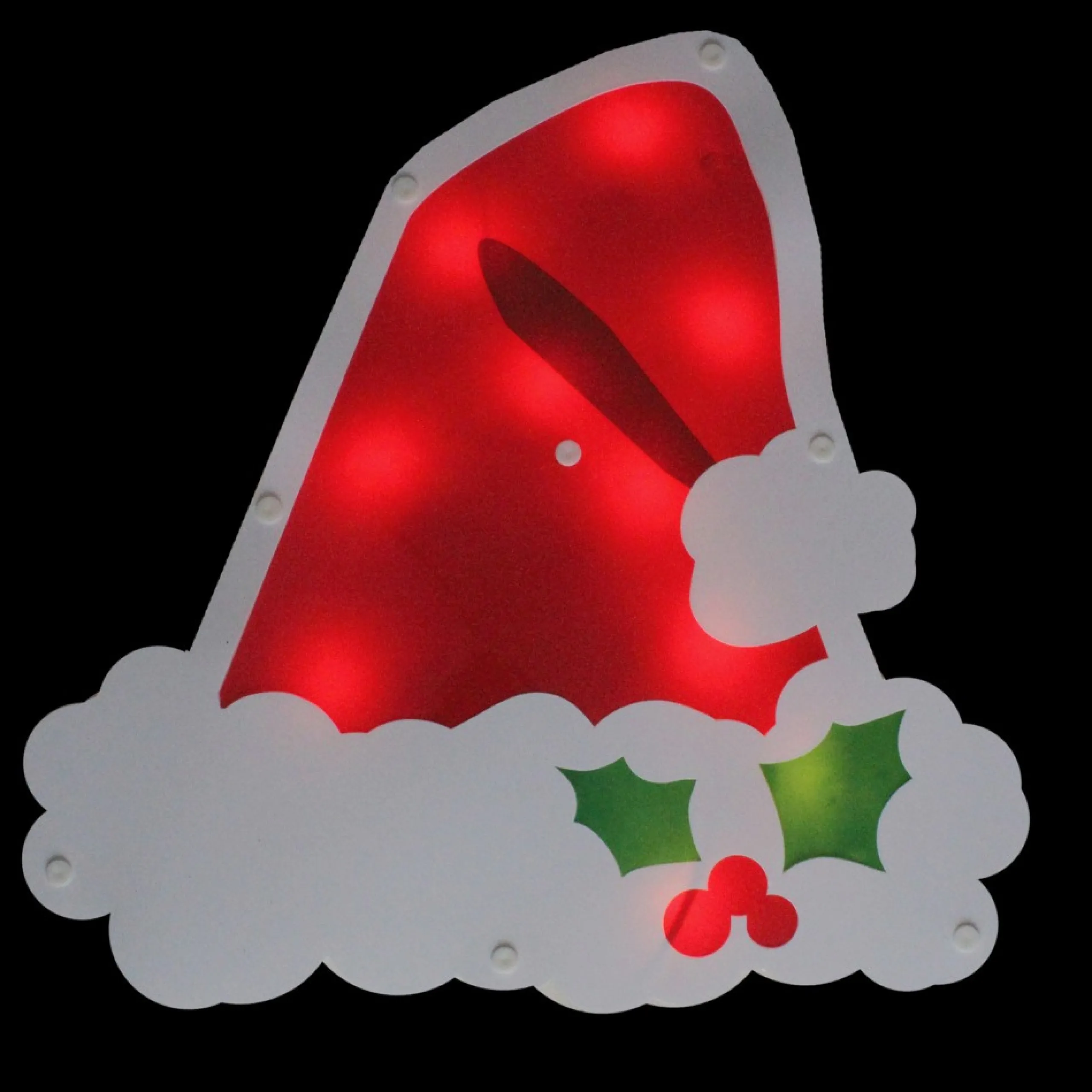 Window Decorations*Impact 12.5″ Lighted White And Red Santa Hat Christmas Window Silhouette Decoration