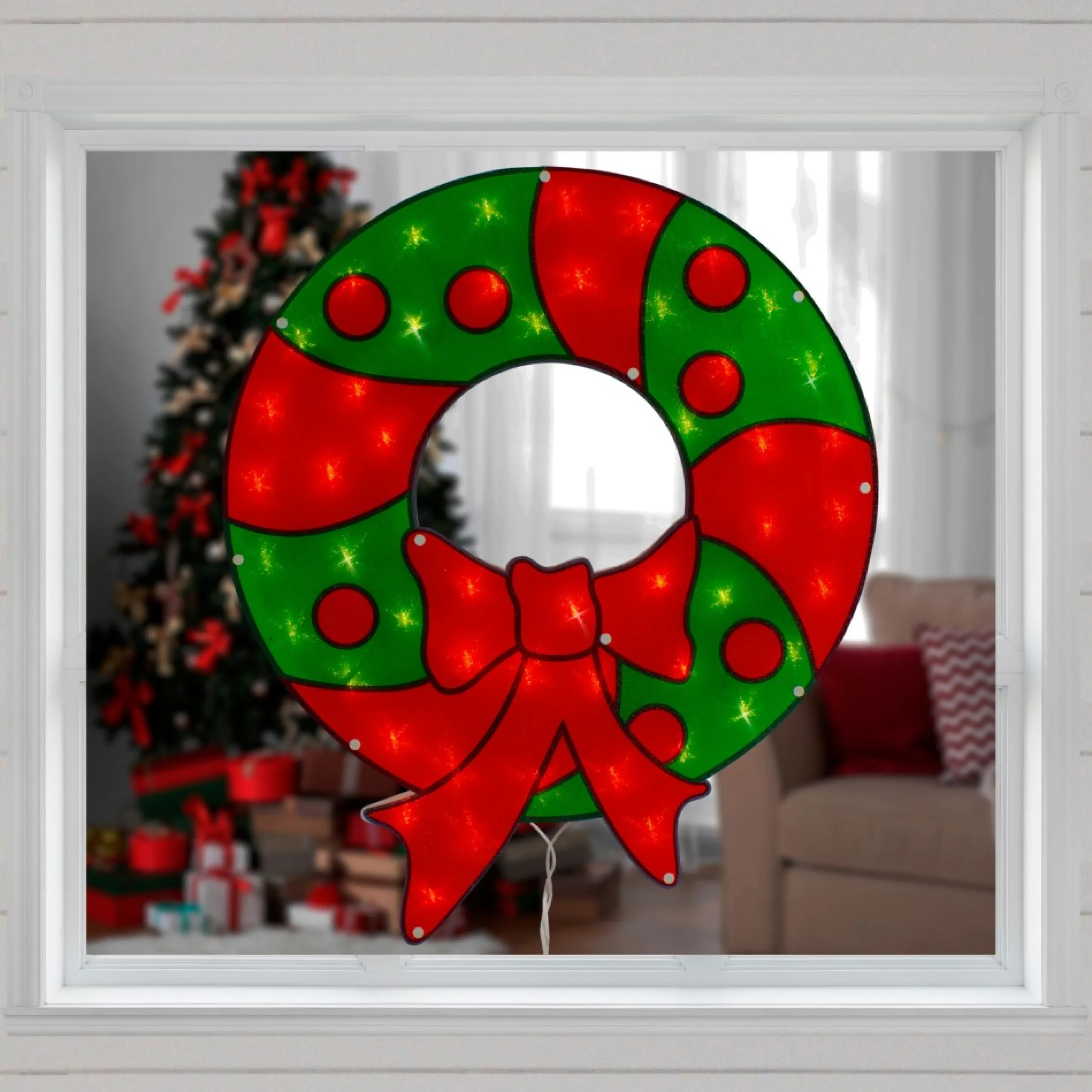 Window Decorations*Northlight 23″ Lighted Red And Green Christmas Wreath Window Silhouette