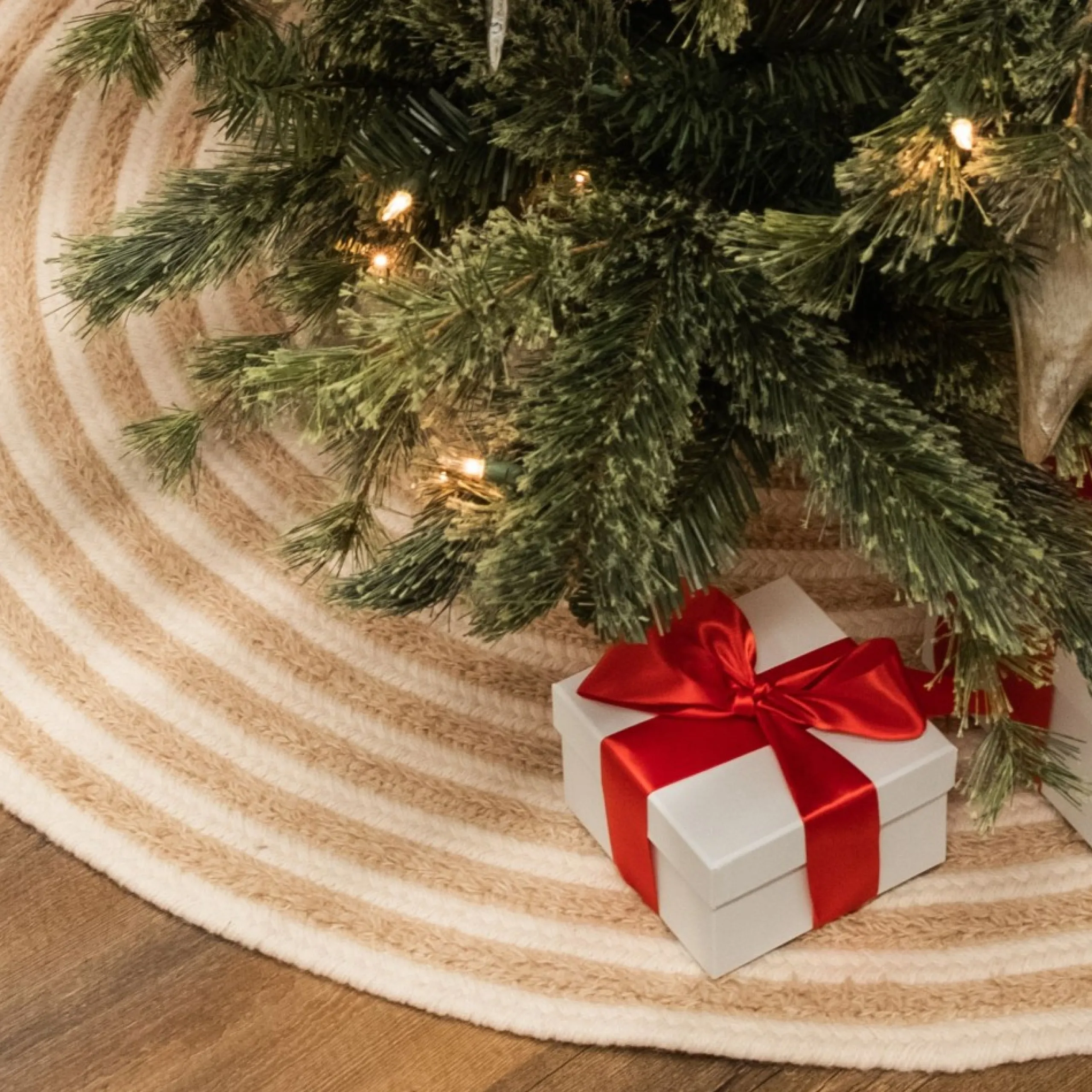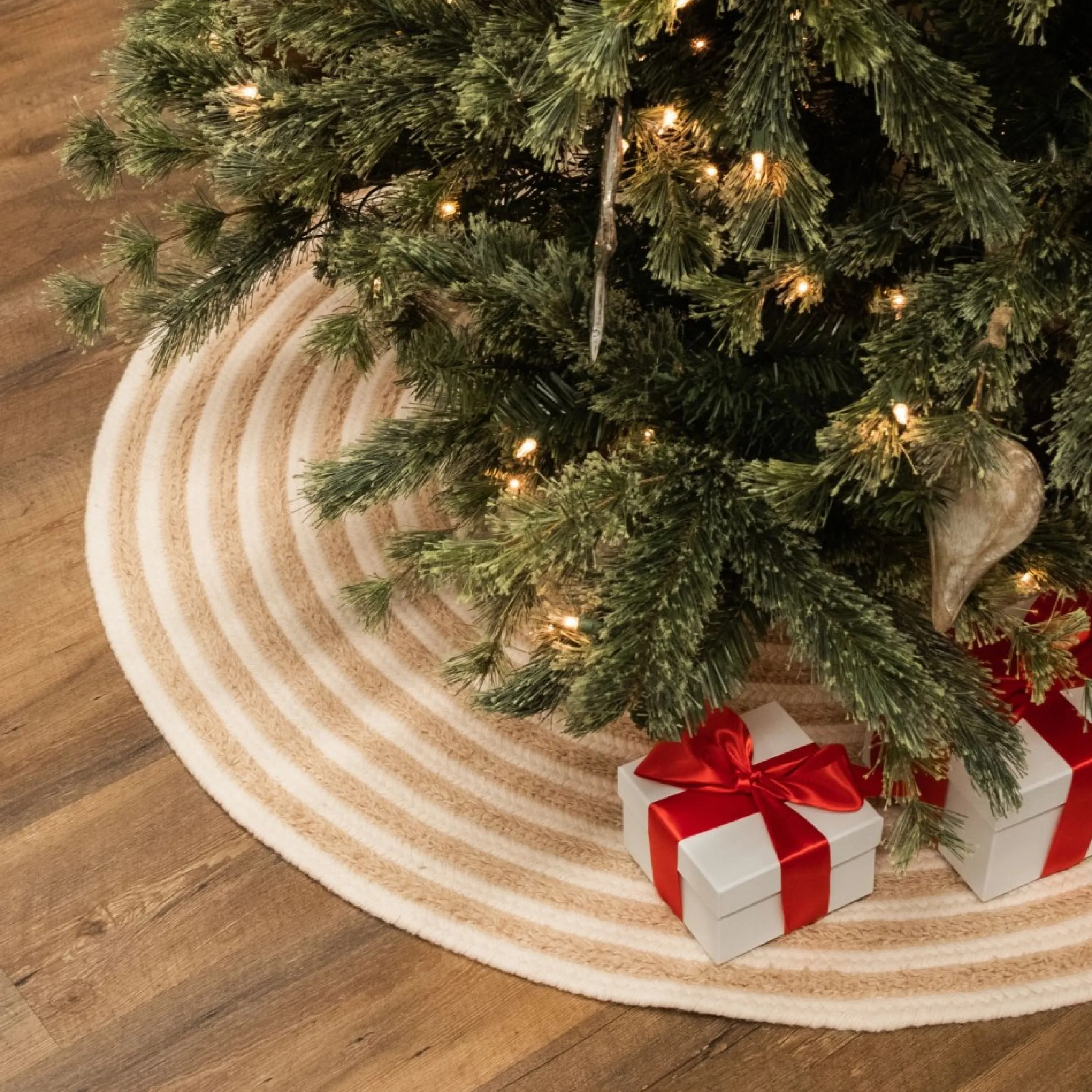 48 Inch And Smaller*Colonial Mills 44″ Beige Stripe Round Christmas Tree Skirt