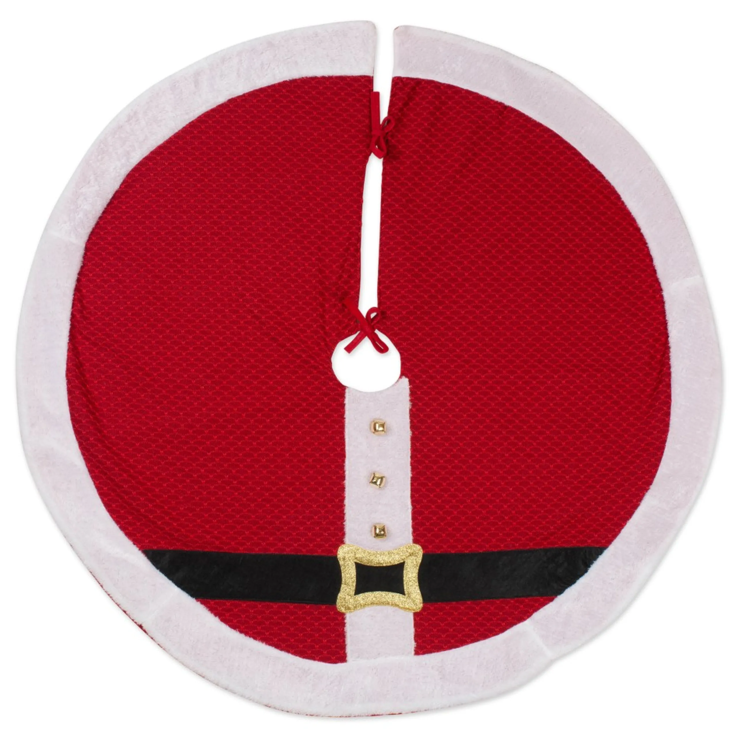 48 Inch And Smaller*Contemporary Home Living 42″ Red And White Santa Belt Themed Round Christmas Tree Skirt