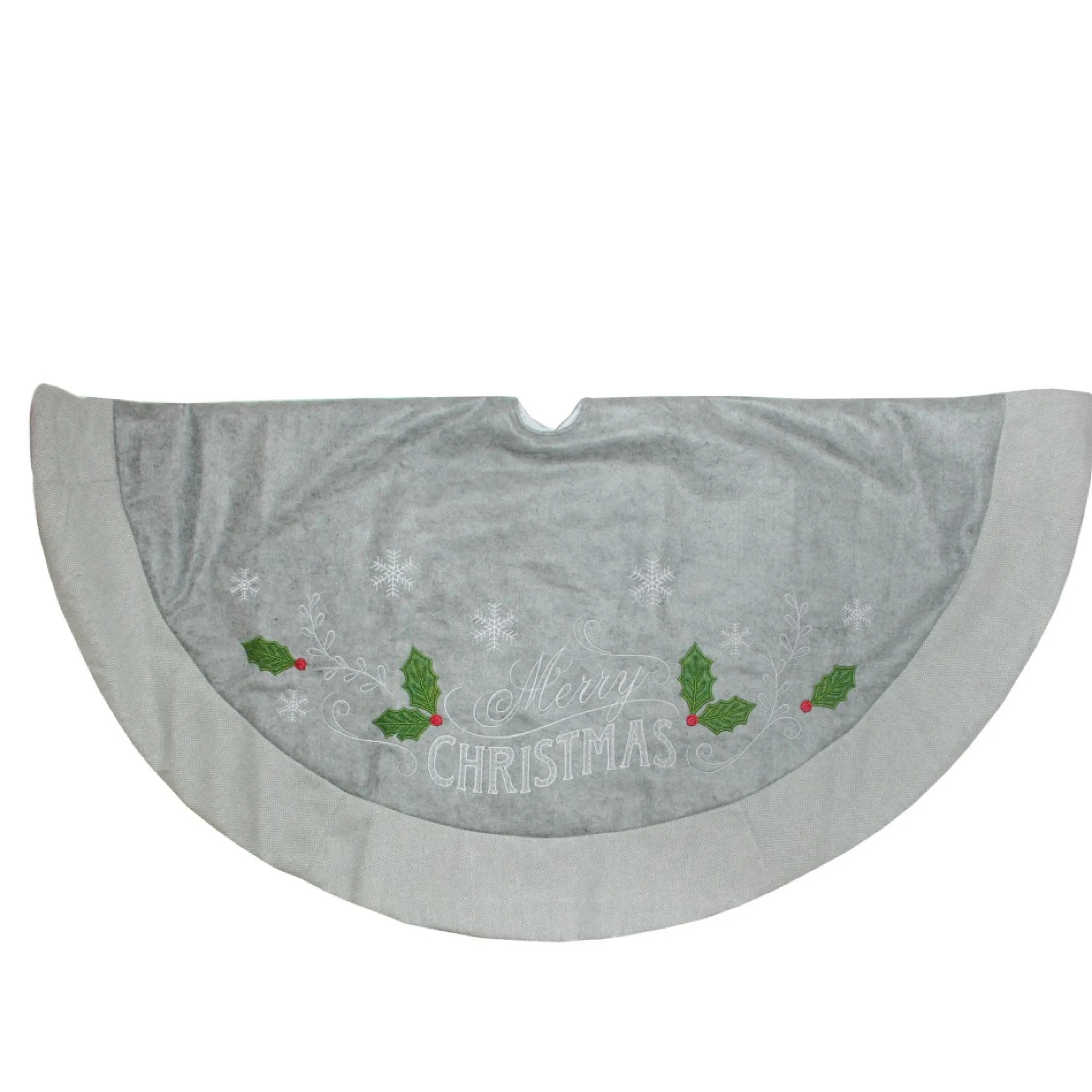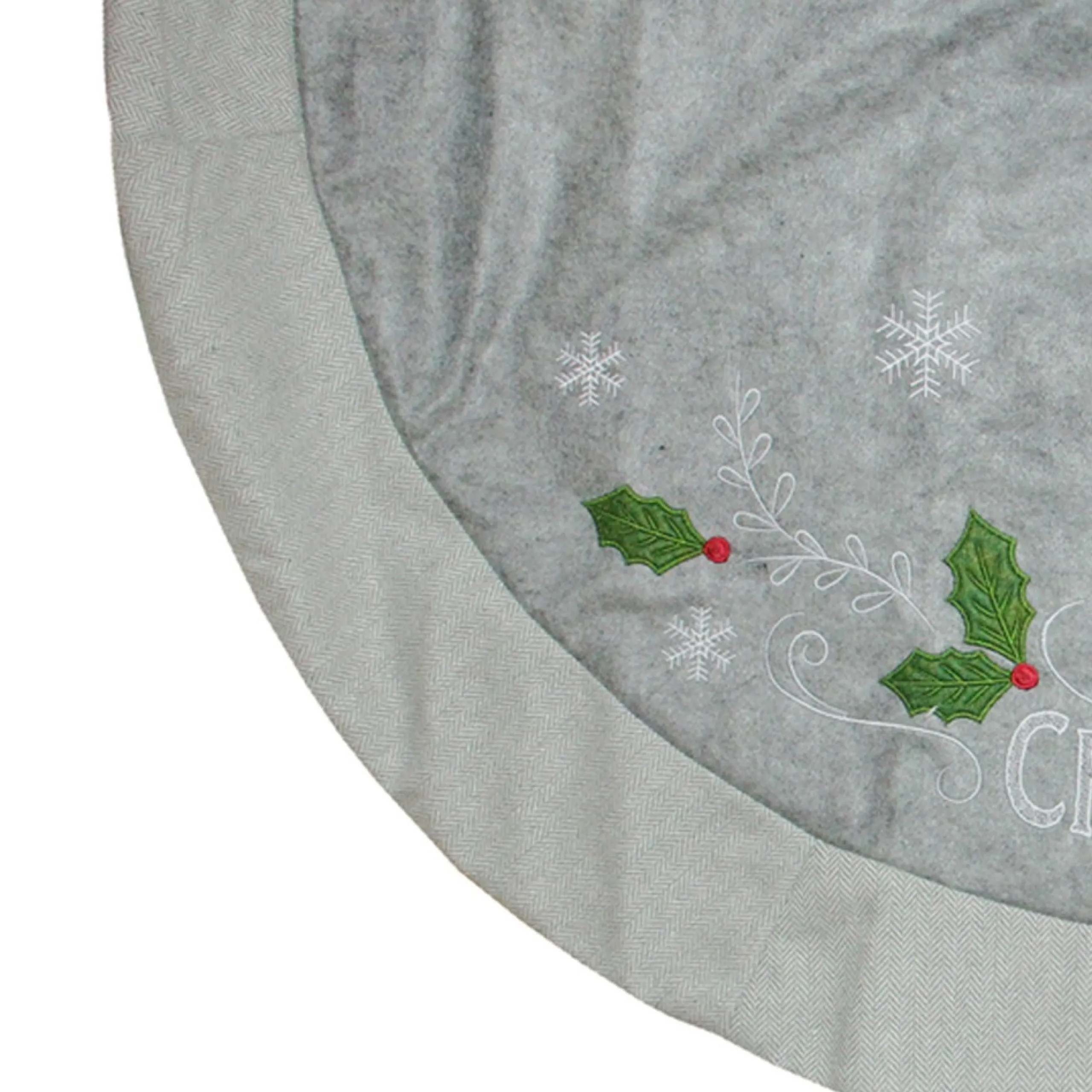 48 Inch And Smaller*Dyno 48″ Gray And Green ‘Merry Christmas’ Mottled Tree Skirt With Herringbone Bordered Trim