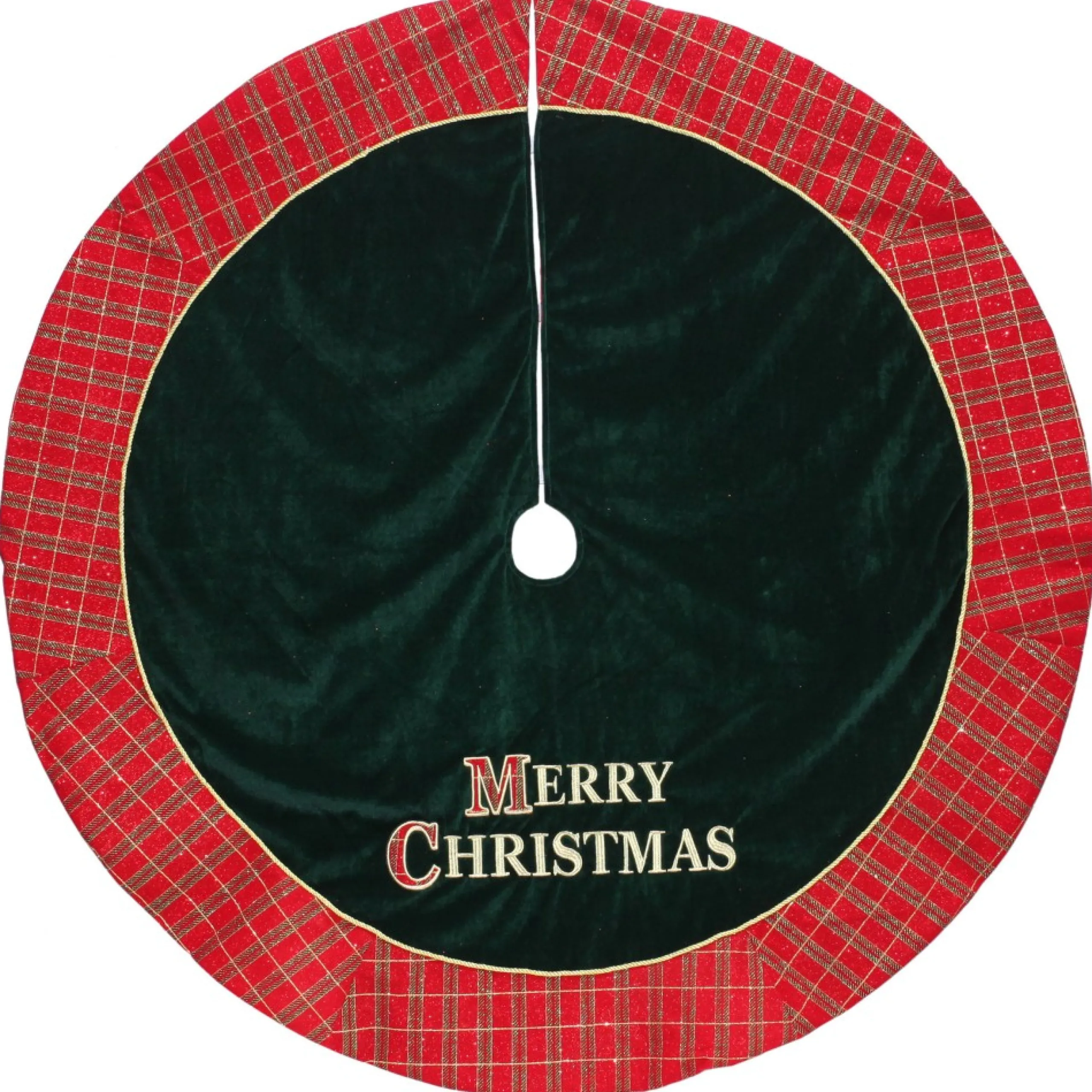 48 Inch And Smaller*Dyno 48″ Red And Green ‘Merry Christmas’ Plaid Christmas Tree Skirt