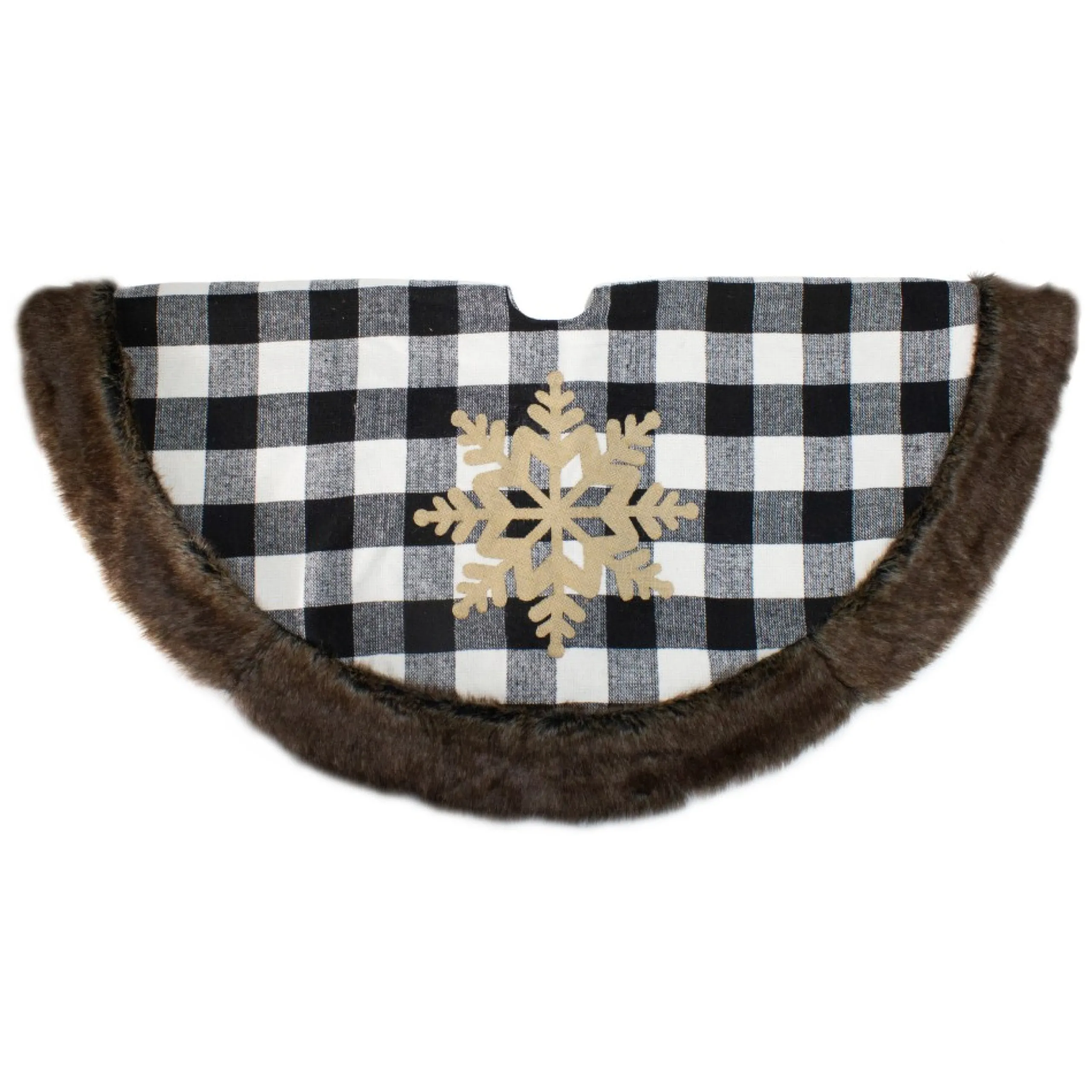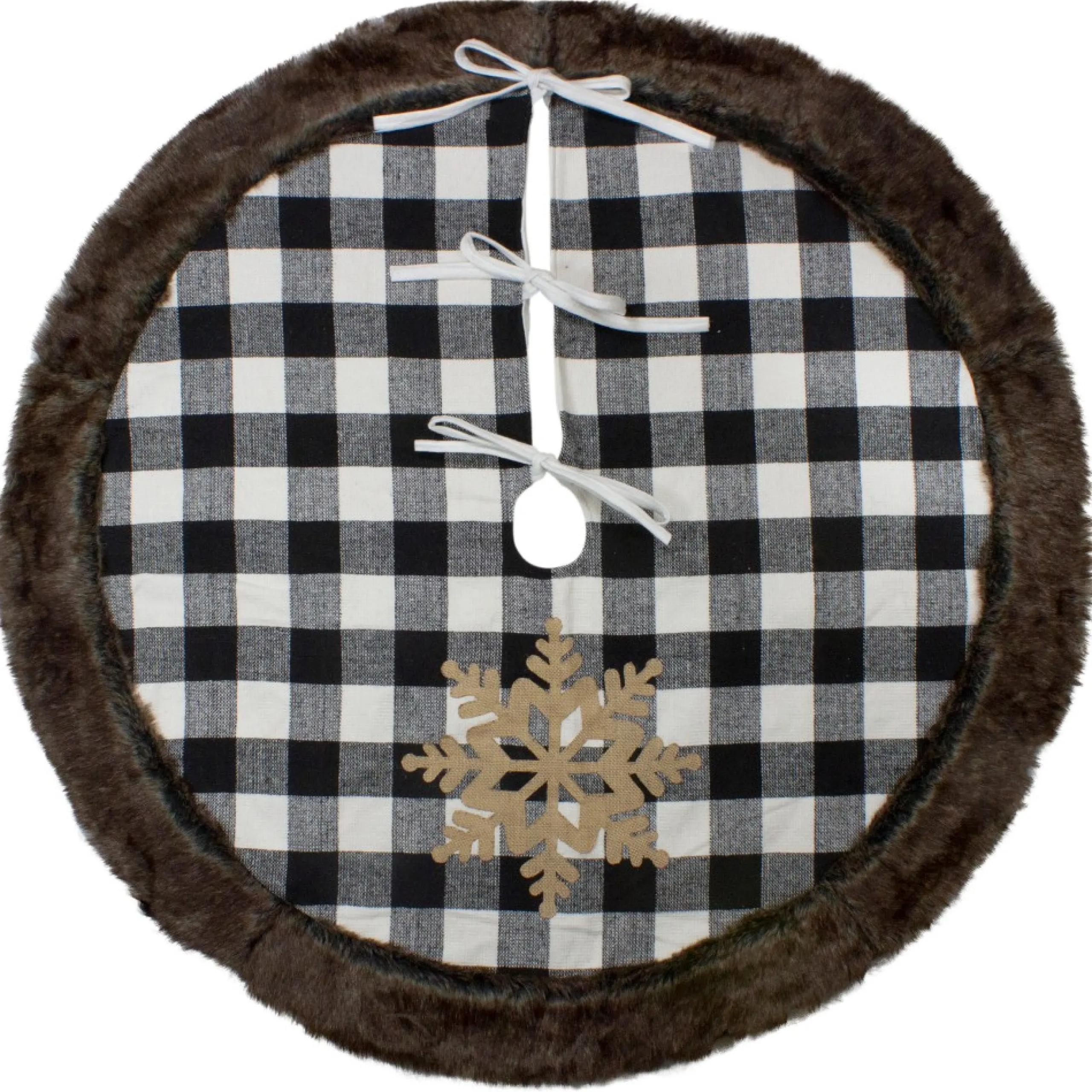 48 Inch And Smaller*Northlight 48″ Black And White Buffalo Plaid Christmas Tree Skirt With Burlap Snowflake