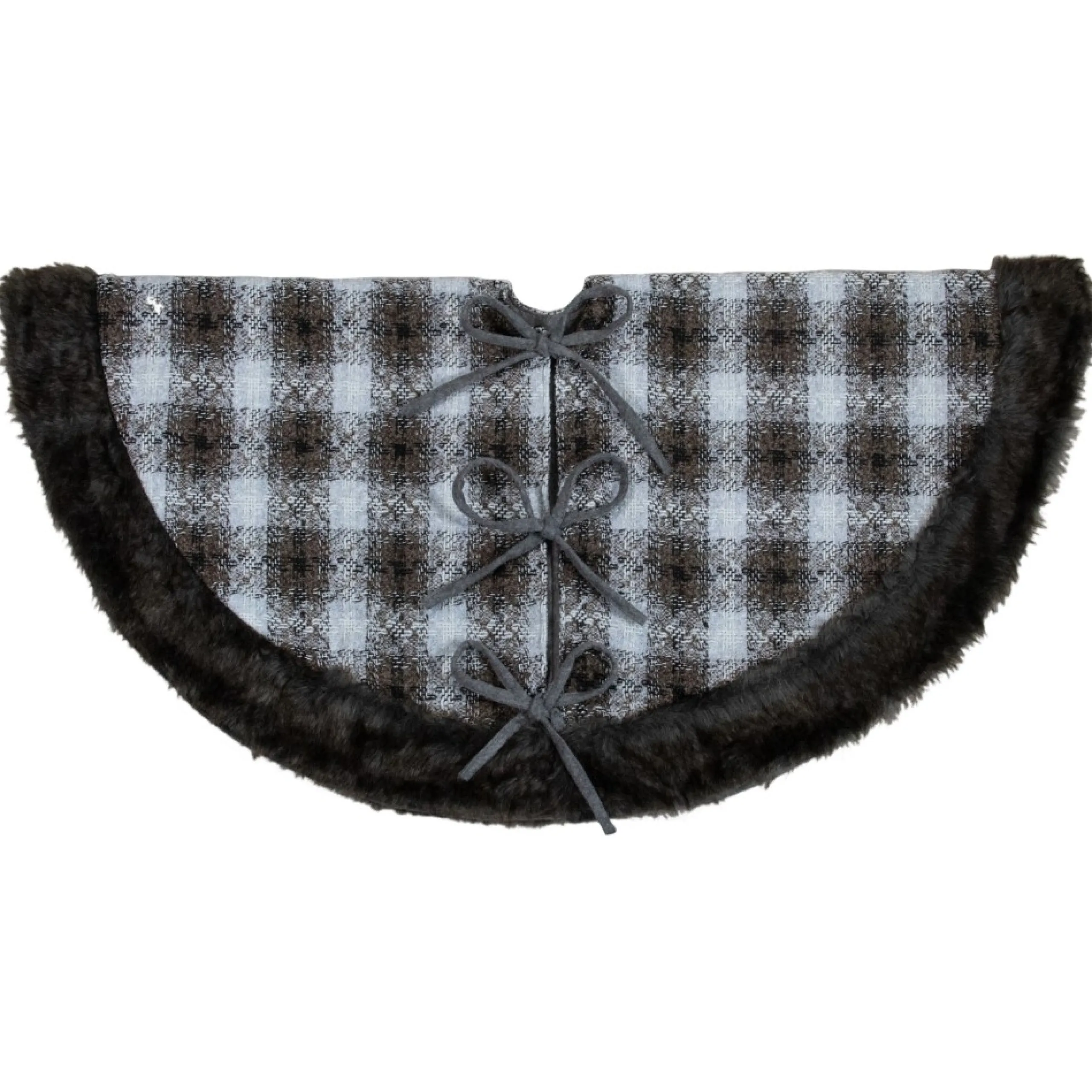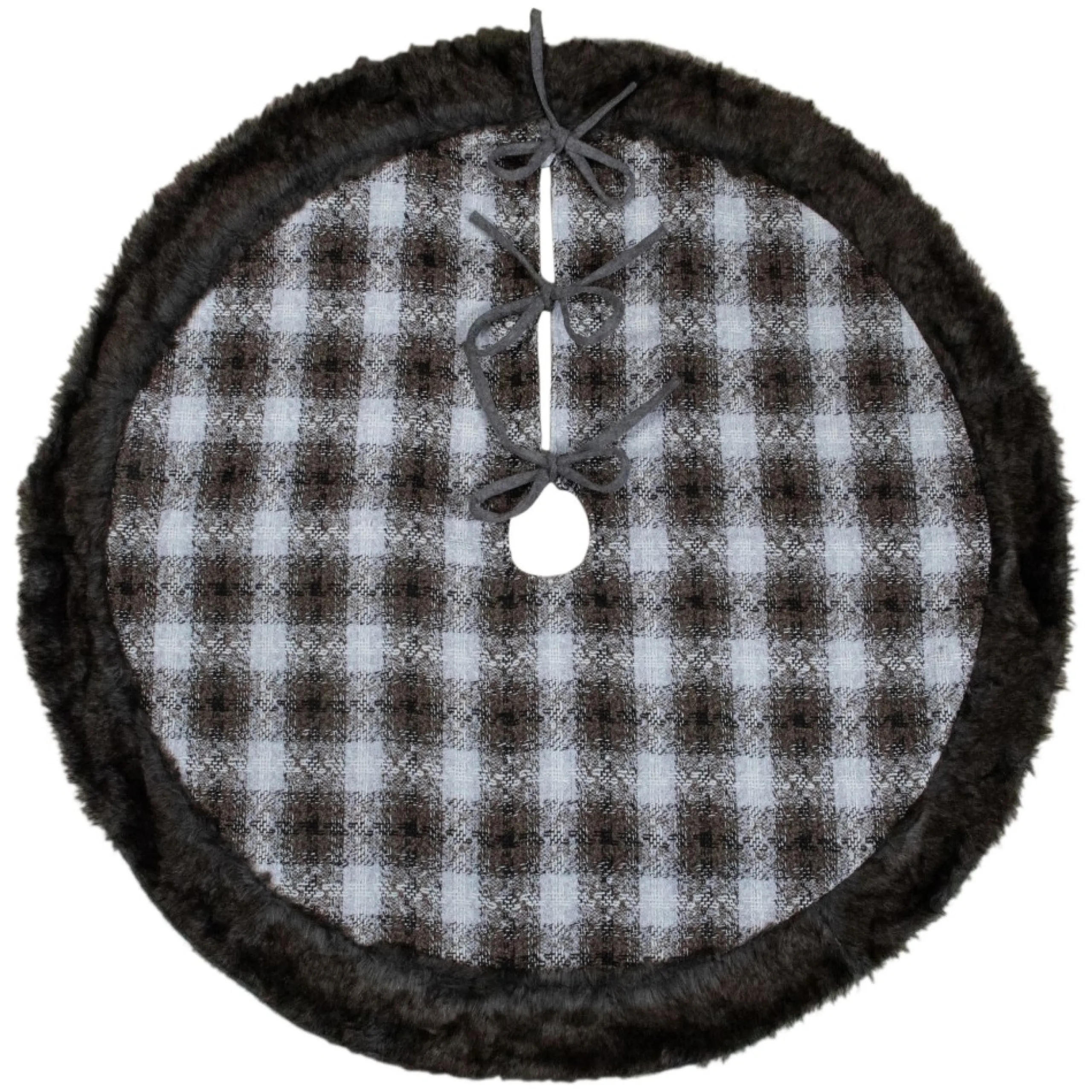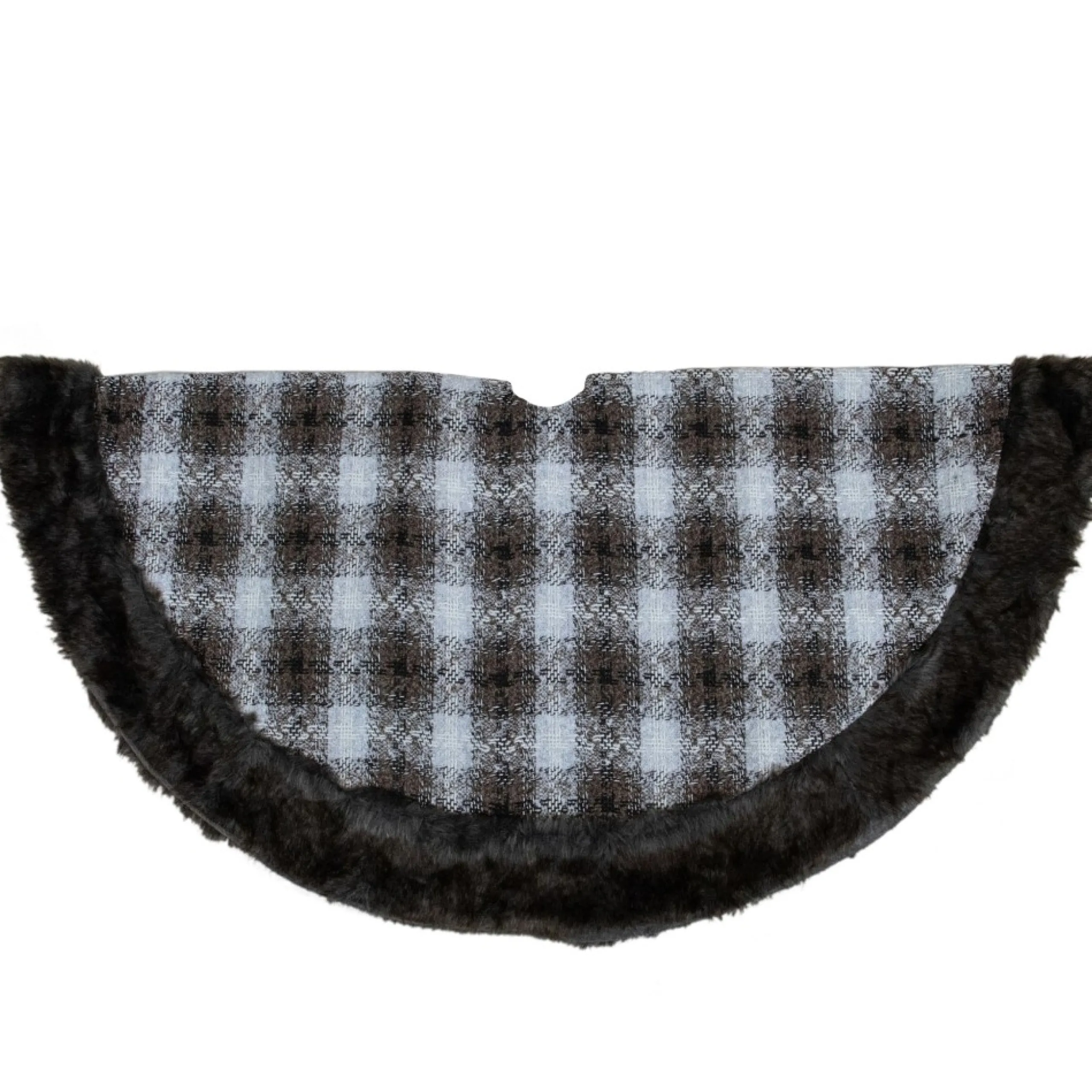 48 Inch And Smaller*Northlight 48″ Brown And White Plaid Christmas Tree Skirt With Faux Fur