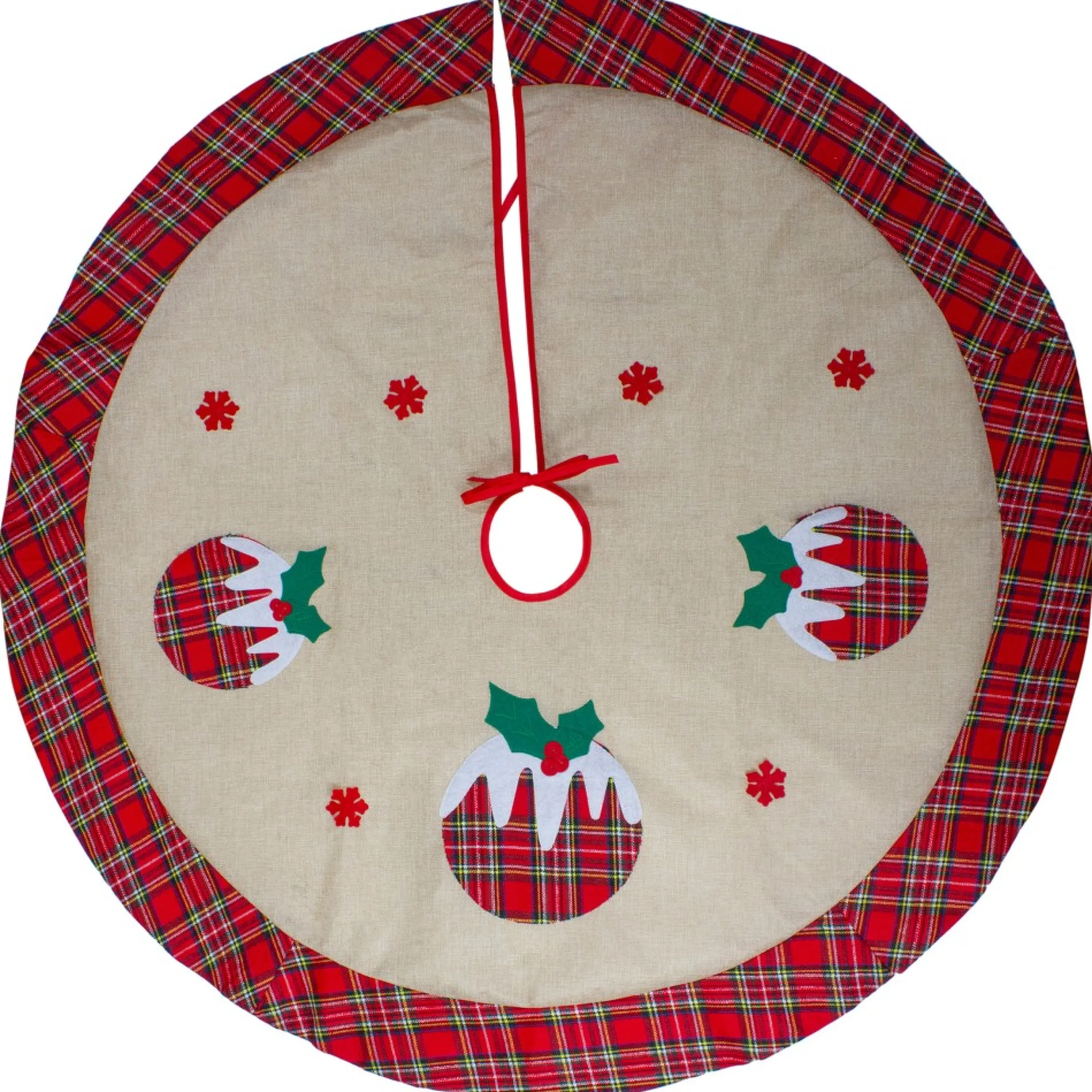 Give Your Christmas Tree The Perfect Traditional Look This Holiday Season The Tree Skirt Is Made From Burlap And Accented With Christmas Pudding And Snowflake Appliques, Along With A Plaid Border And Tiebacks. Tree Skirts Make It Very Simple To Clean Up Those Pine Needles That Fall From Your Tree Each Day.