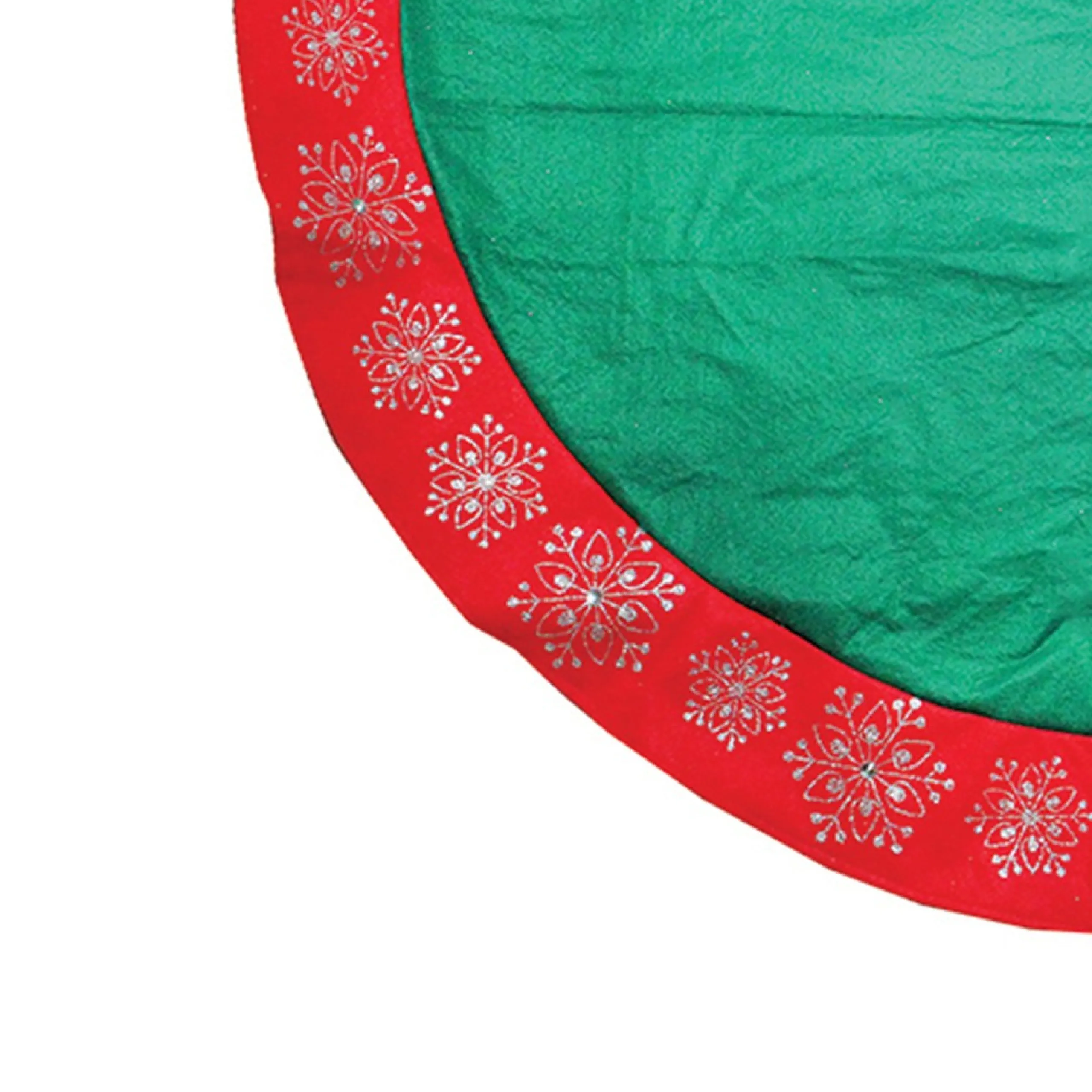 48 Inch And Smaller*Northlight 48″ Green Christmas Tree Skirt With Red Gemstone Glitter Snowflake Trim