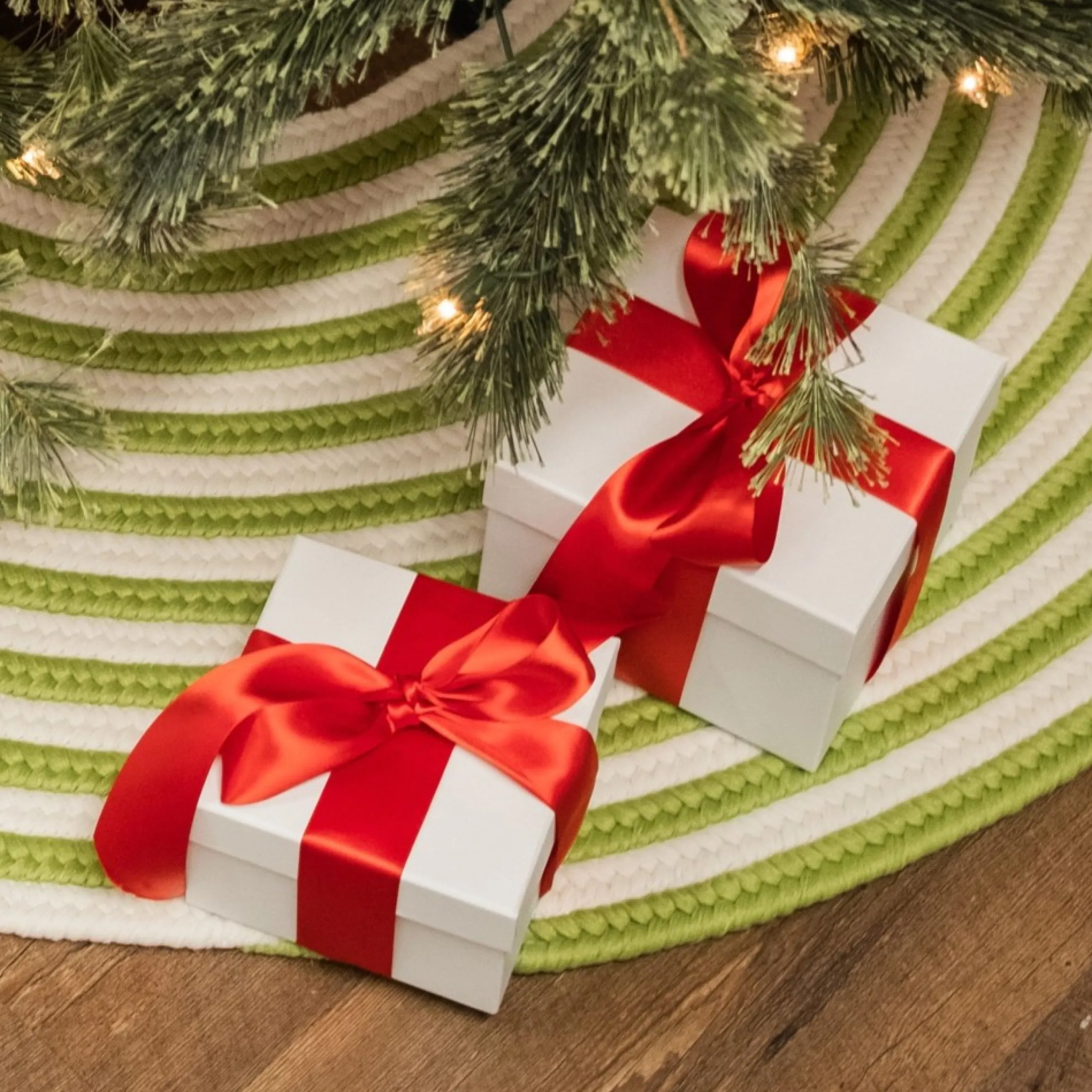 Experience Holiday Enchantment With Our Whimsical Striped Tree Skirt, Evoking The Charm Of Candy Canes. Equipped With Dual Braided Ties For Secure Placement, It Retains Its Vibrant Color And Thrives In Moisture-Prone Areas. Versatile Enough For Bathrooms, Basements, Kitchens, Or Even Outdoor Use, This Durable Skirt Is Built To Endure. Its Reversible Design Doubles Its Lifespan, Ensuring Lasting Beauty And Utility.