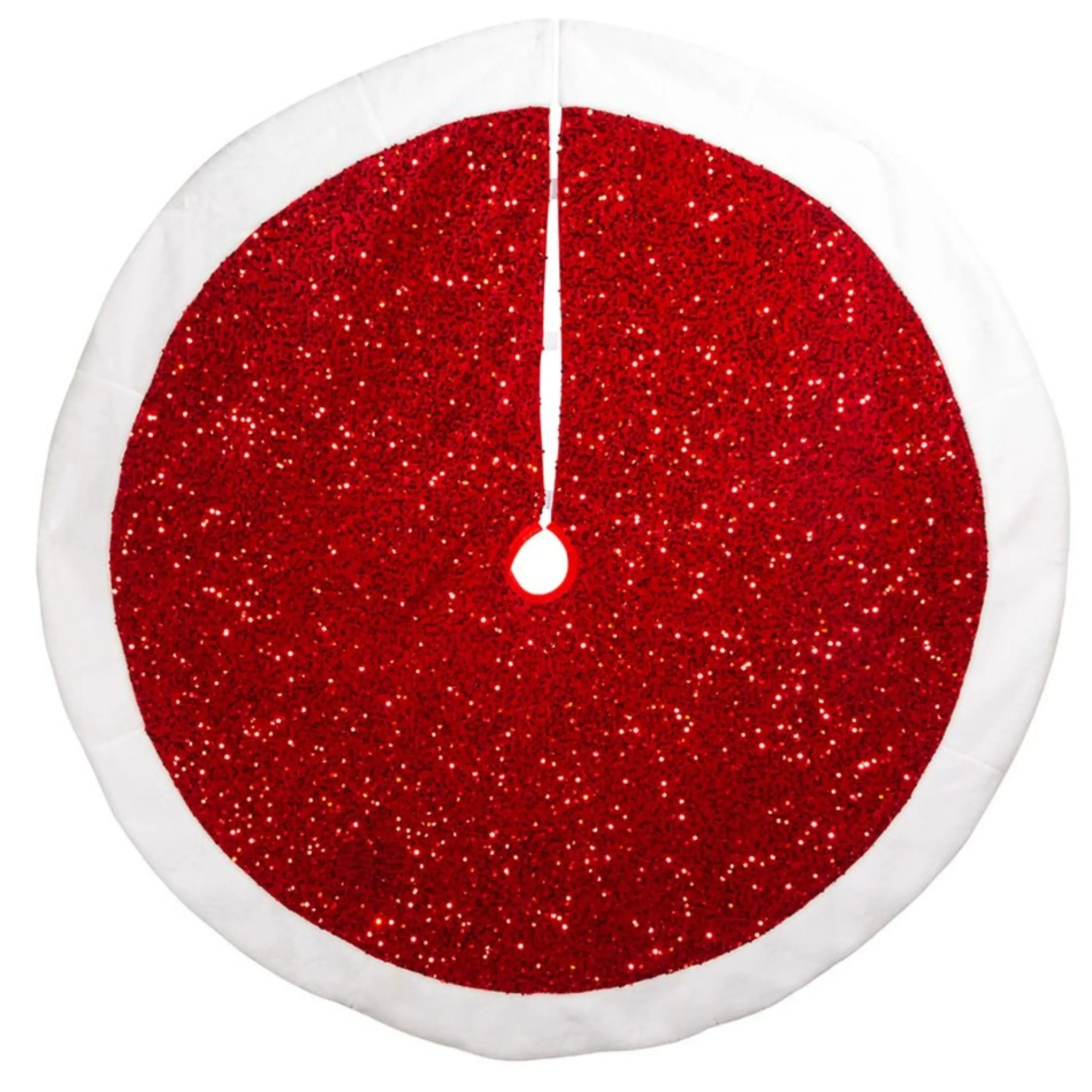 Elevate Your Holiday Decor With The Sequins With Border Tree Skirt, A Stunning And Festive Addition To Any Christmas Tree. Embellished With Shimmering Sequins, This Tree Skirt Is Sure To Catch The Eye And Add A Touch Of Glamour To Your Holiday Ambiance. The Border Framing The Skirt Creates A Beautiful Contrast That Enhances The Striking Red And Sequin Design, Making Your Tree Truly Stand Out.