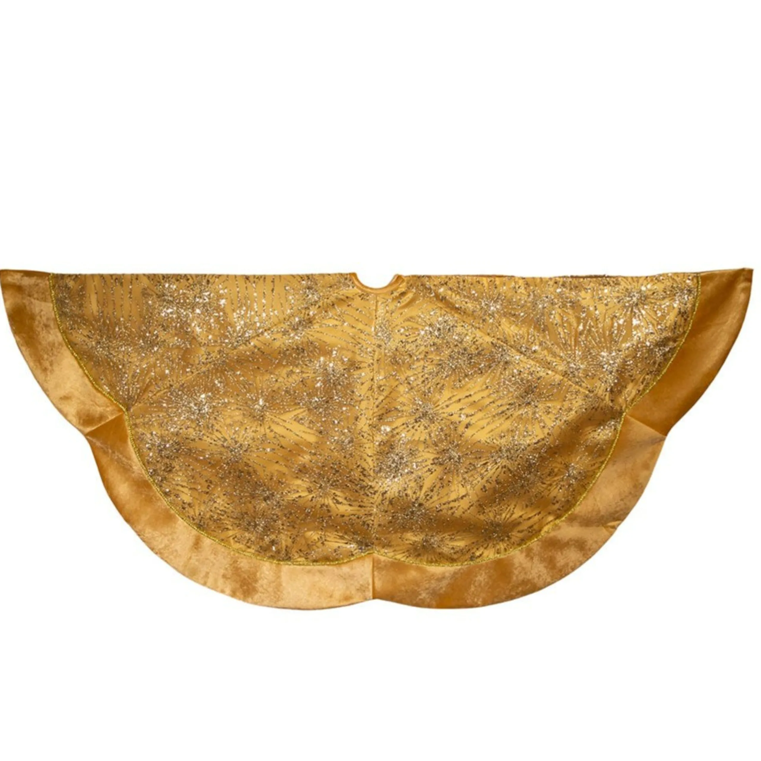 50 Inch And Larger*KSA 60″ Gold Velvet With Glittered Christmas Tree Skirt