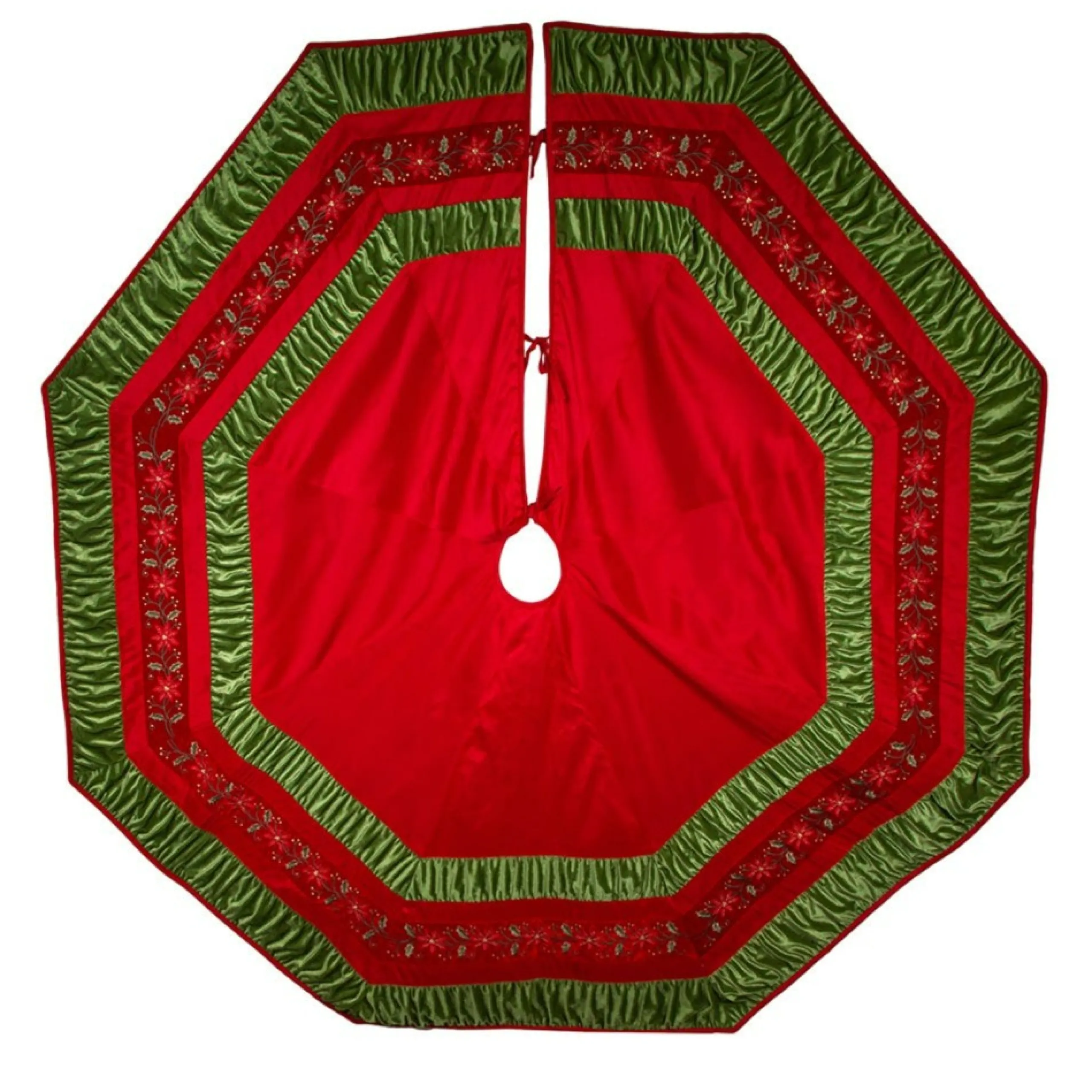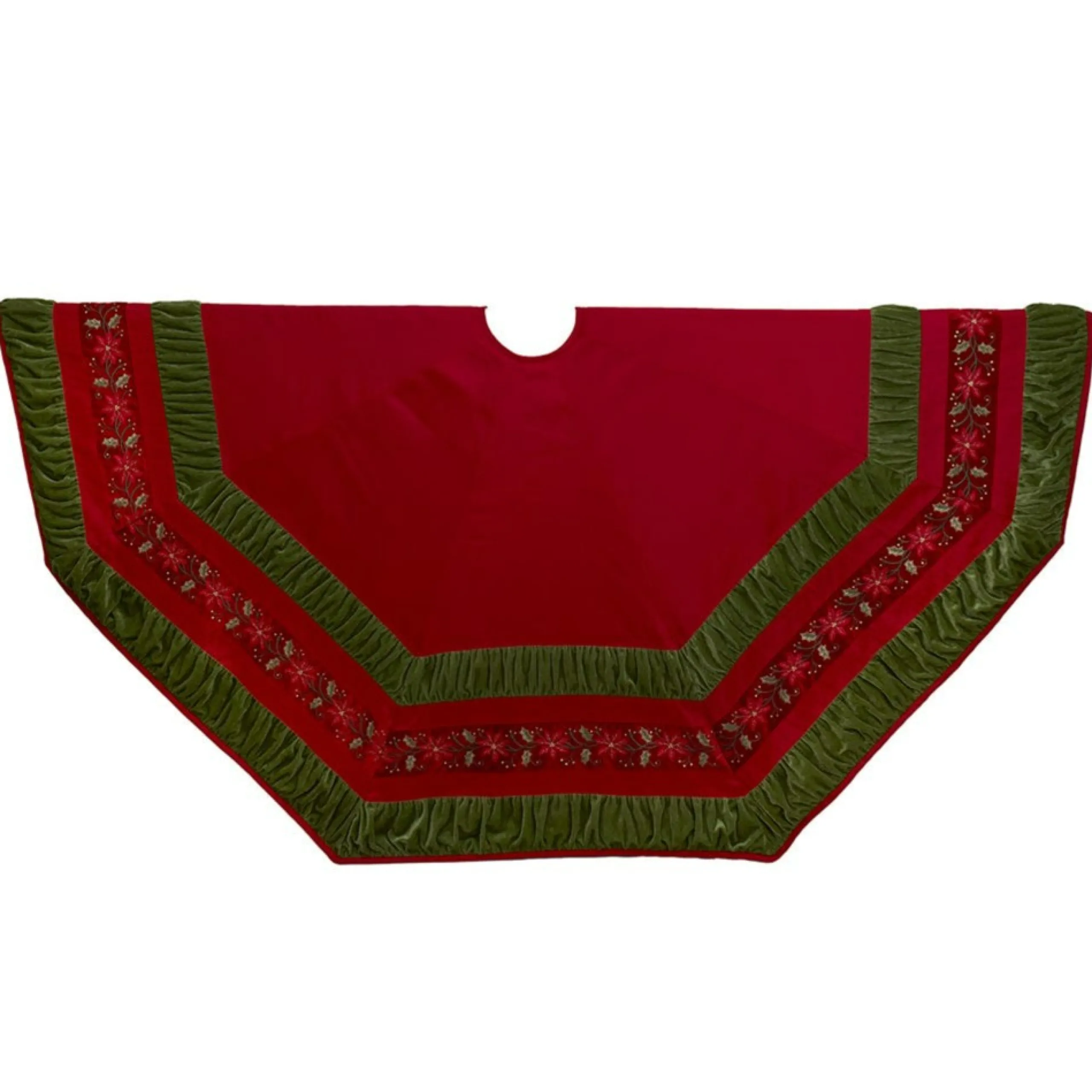 50 Inch And Larger*KSA 72″ Poinsettia Gathered Border Christmas Tree Skirt