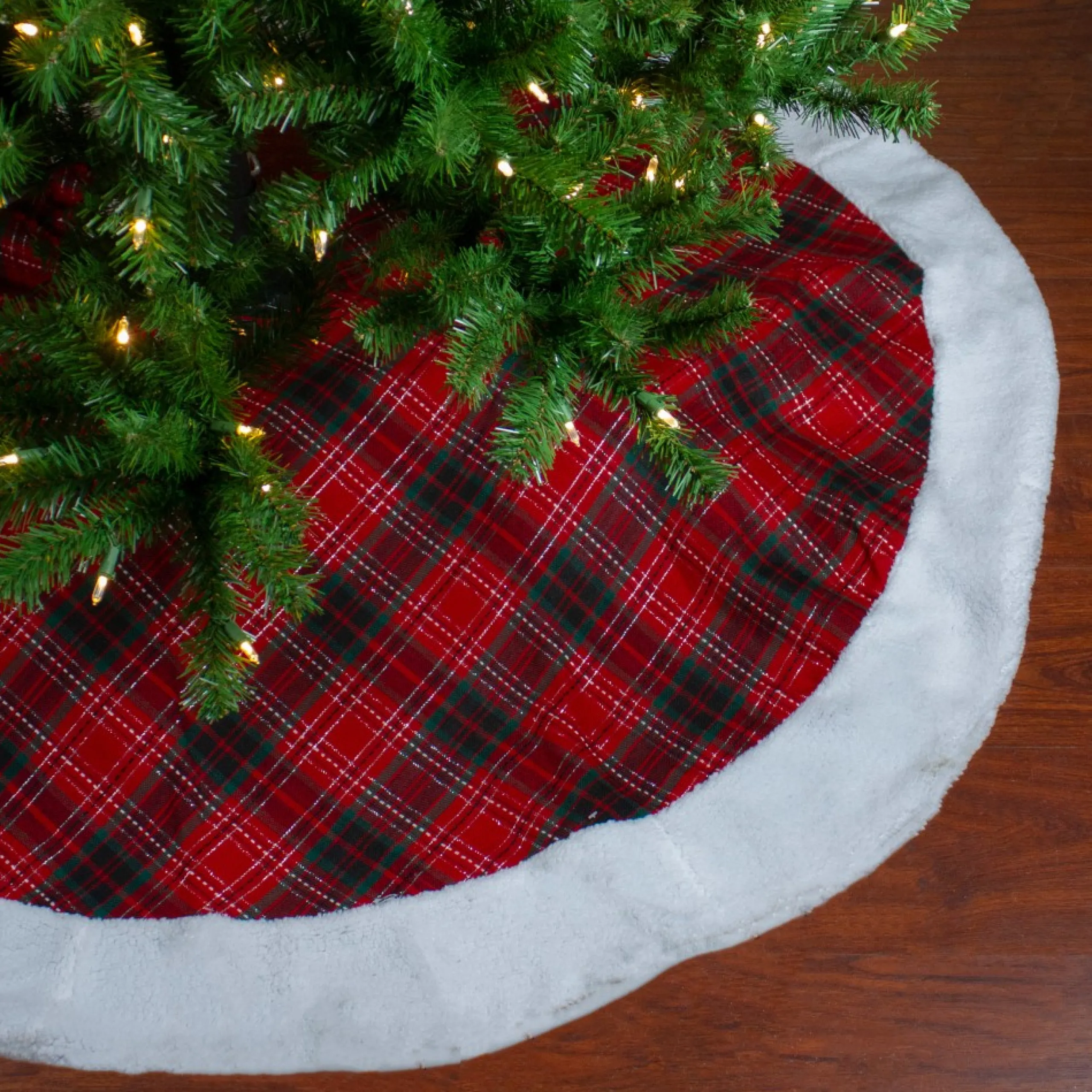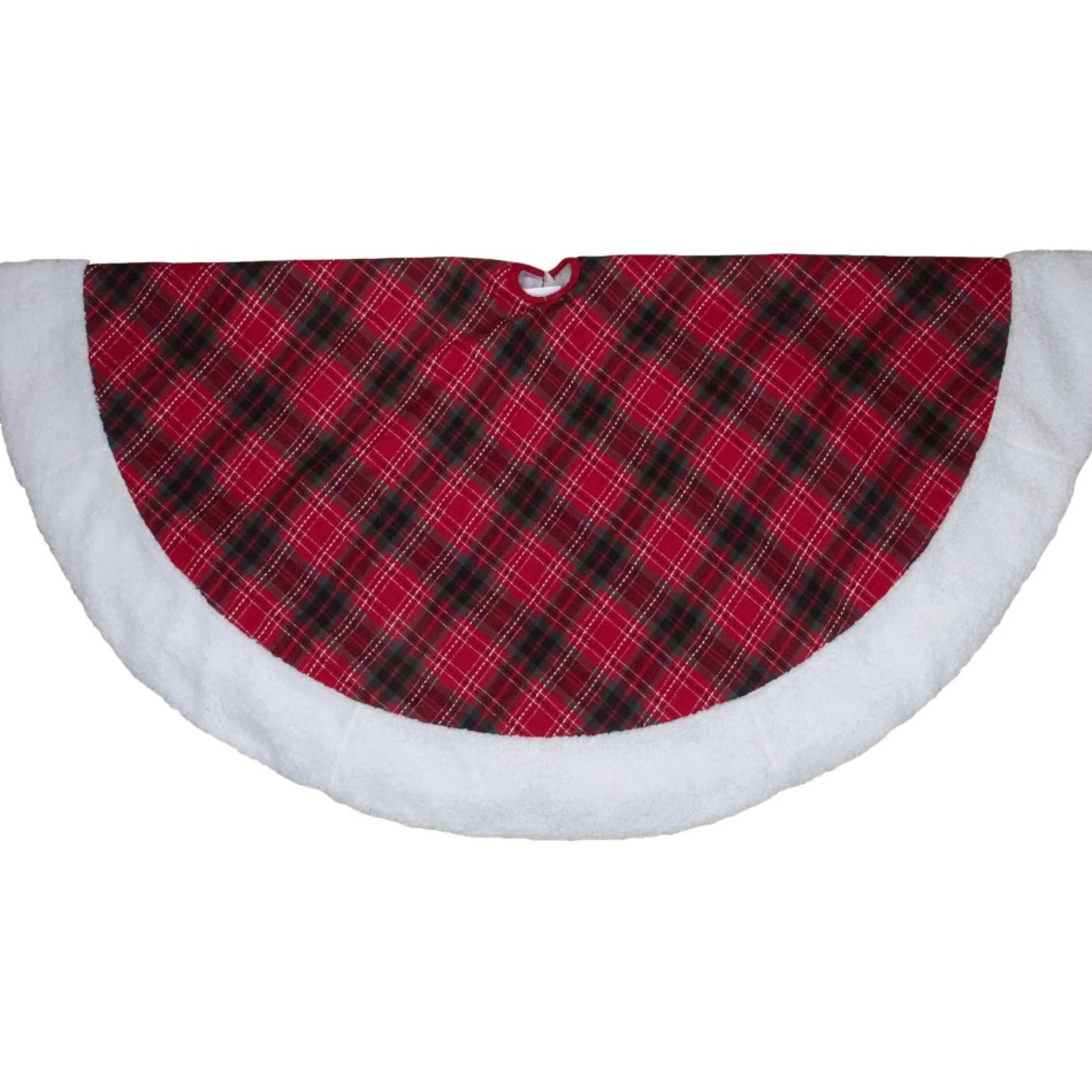 50 Inch And Larger*Northlight 60″ Red And Green Plaid Christmas Tree Skirt With White High Pile Fleece Trim
