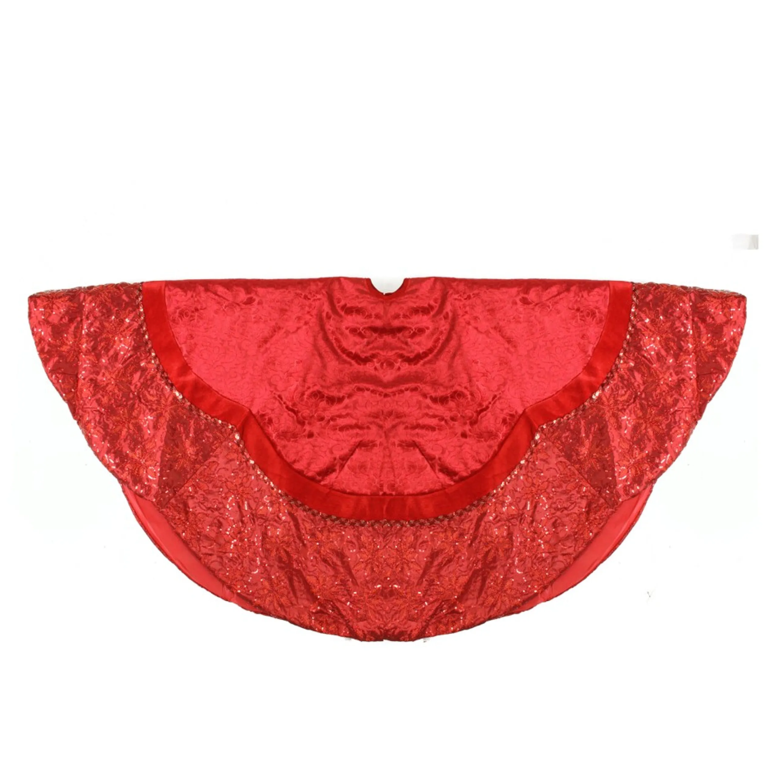 50 Inch And Larger*Northlight 60″ Red Velvet Damask Sequin Embroidered Poinsettia Trimmed Scalloped Edge Christmas Tree Skirt