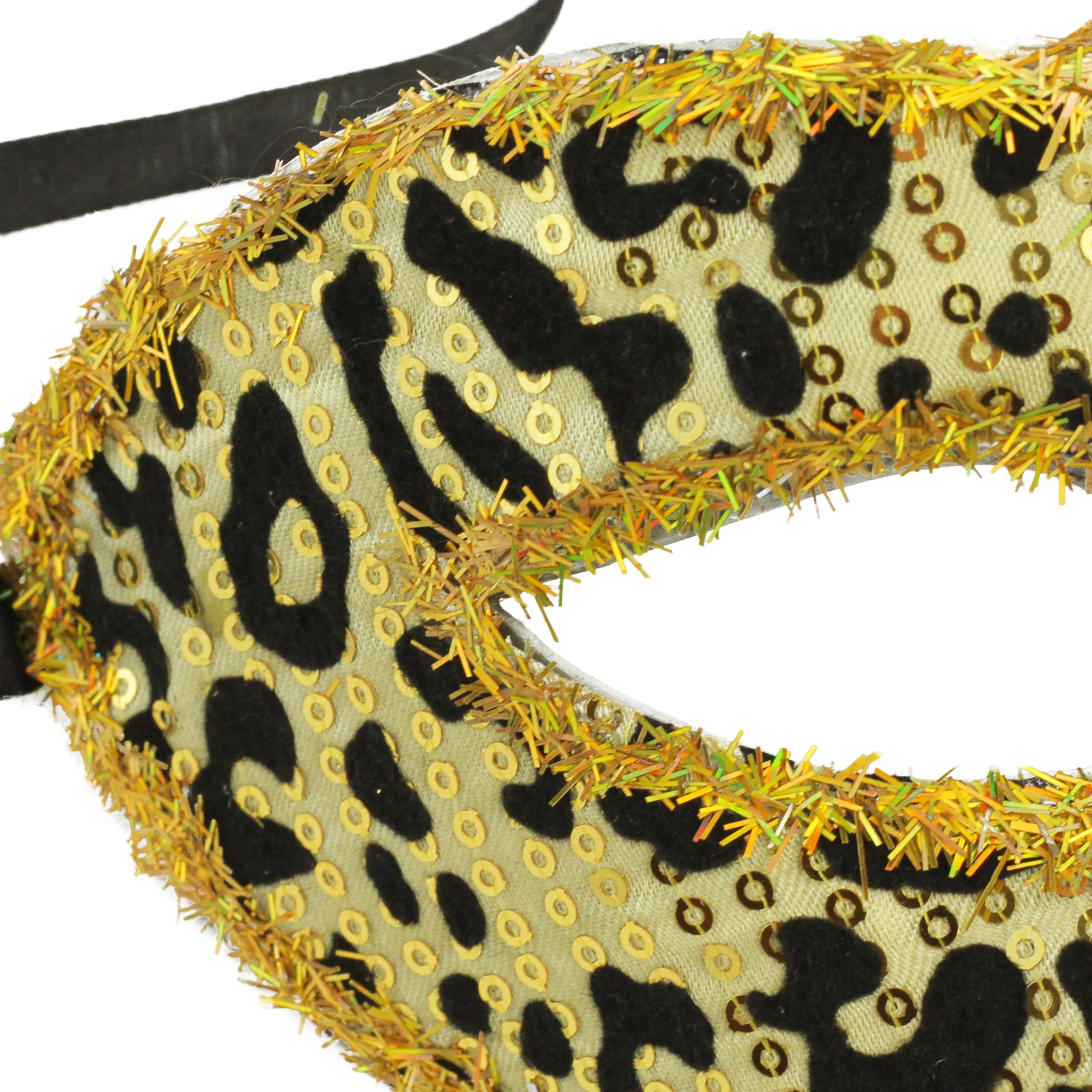 Allstate 7″ Gold And Black Big Cat Animal Print Halloween Mask With Sequins – One Size