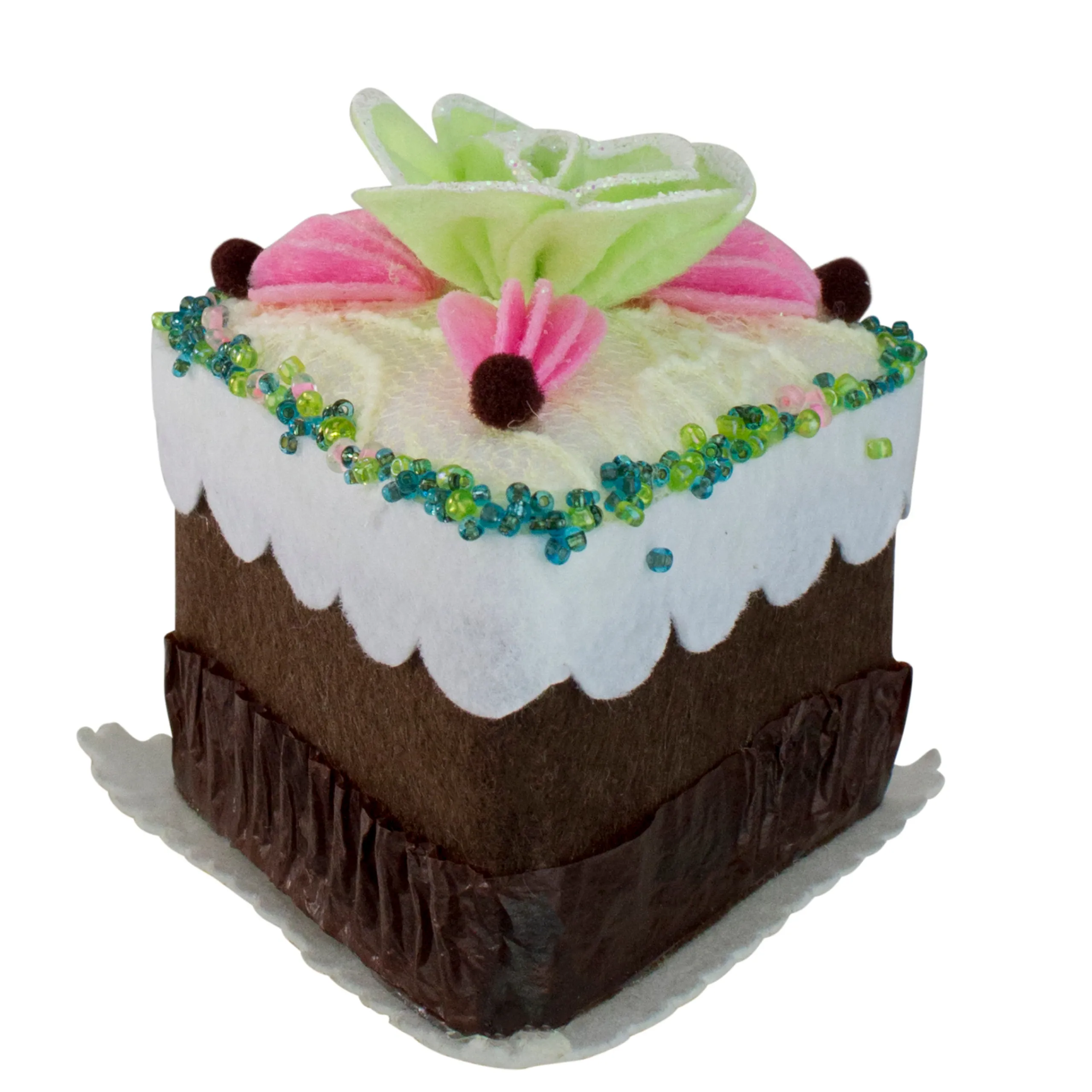 Allstate Food & Beverage>4″ Brown And Green Sliced Chocolate Cake With Flower Christmas Ornament