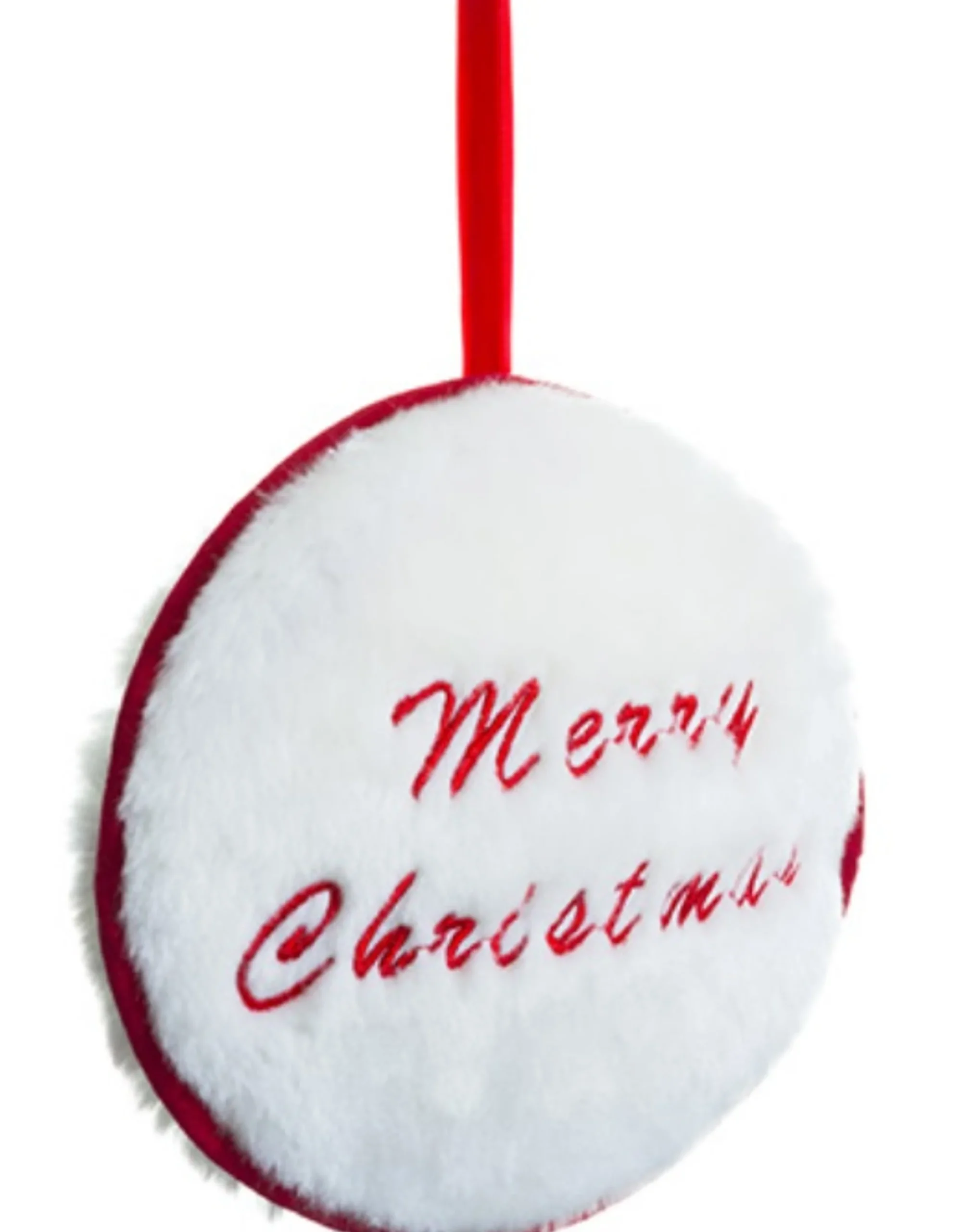 Allstate Inspirational>7.5″ Red And White “Merry Christmas” Faux Fur Decorative Christmas Disc Ornament