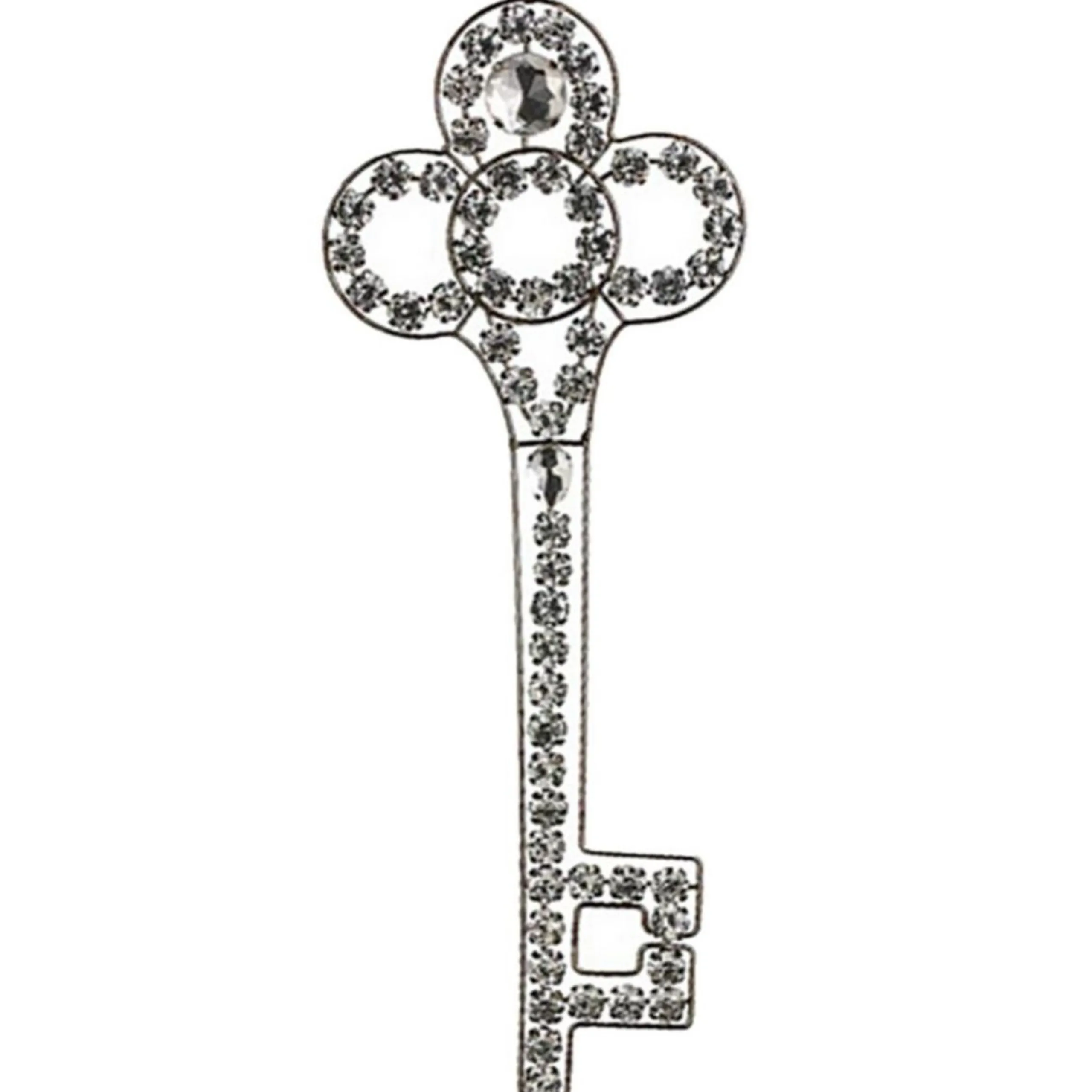 Metal Key Ornament Has An Antique Finish And Is Covered In Embellished Clear Rhinestones
