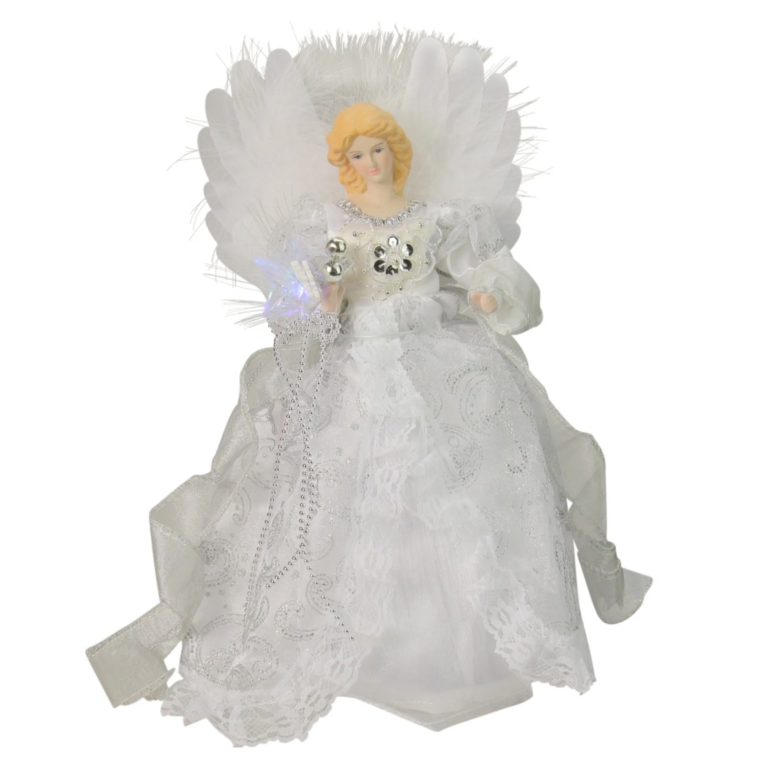 Angel Tree Toppers*Kurt Adler 12″ Elegant White And Silver Led Light Fiber Optic Angel Christmas Tree Topper