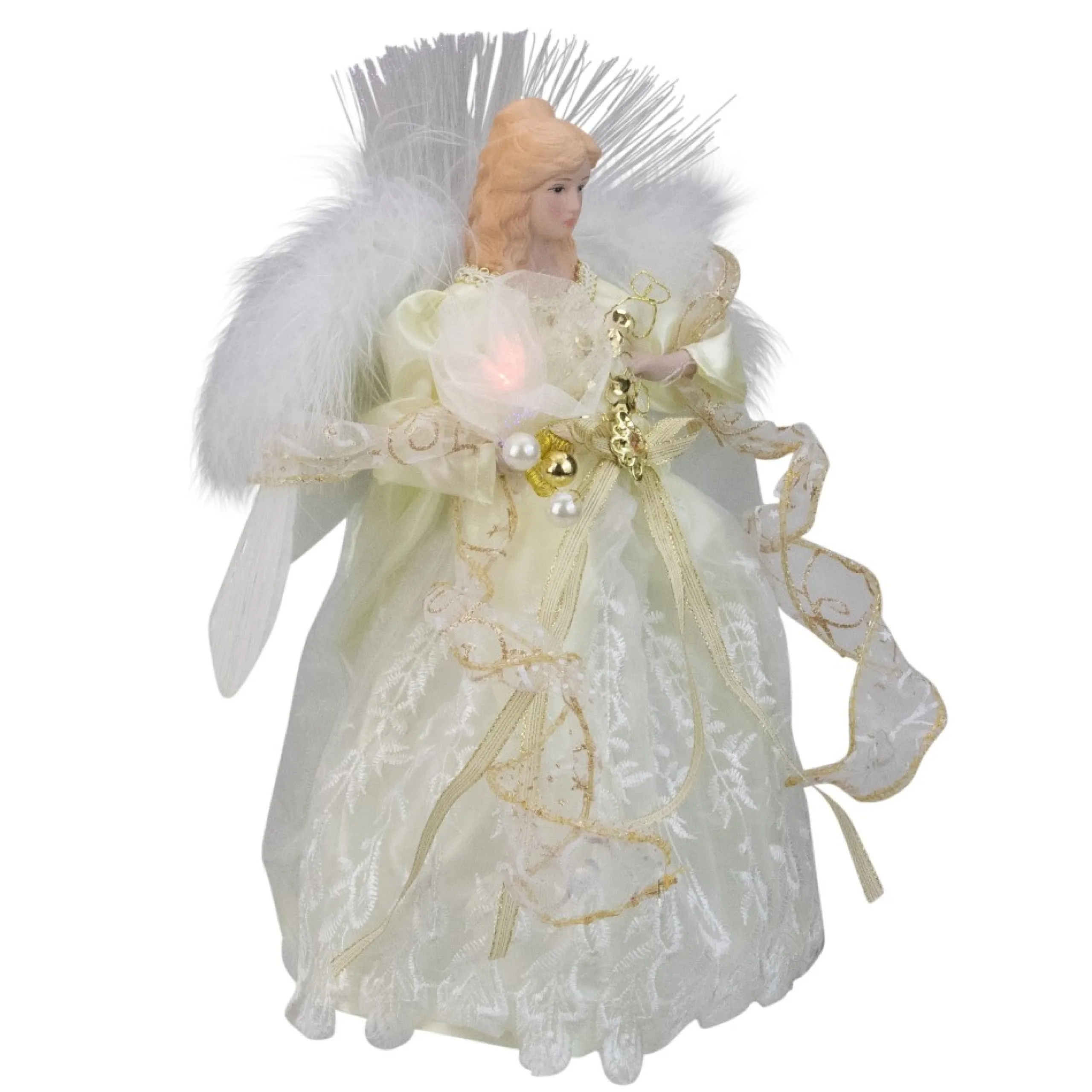 Angel Tree Toppers*Kurt Adler 12″ Gold And White Led Lighted Fiber Optic Angel Christmas Tree Topper