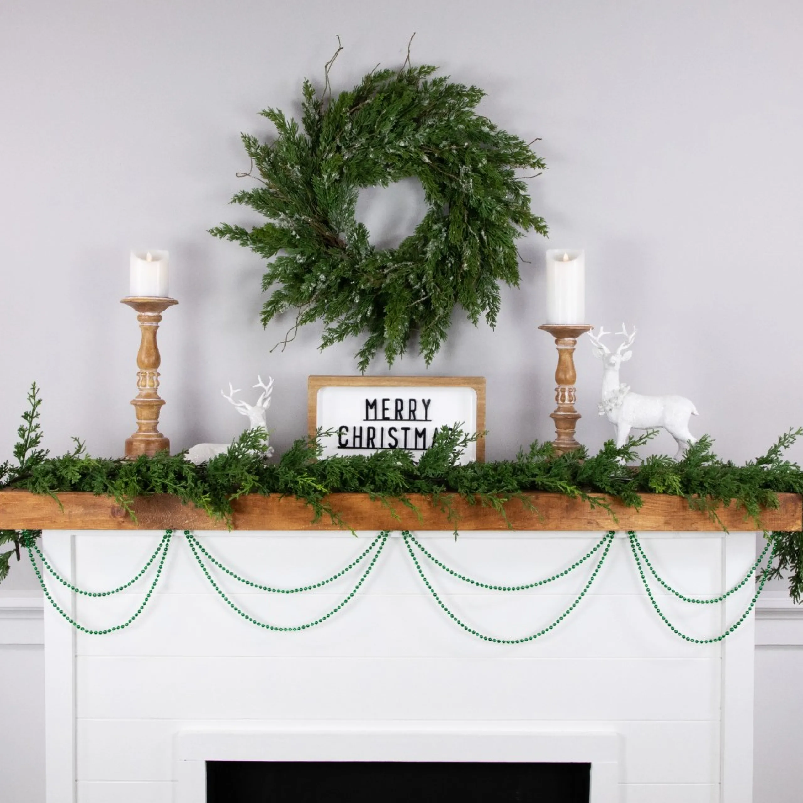 Beaded Garland*Northlight 15′ Shiny Metallic Green Beaded Christmas Garland – Unlit