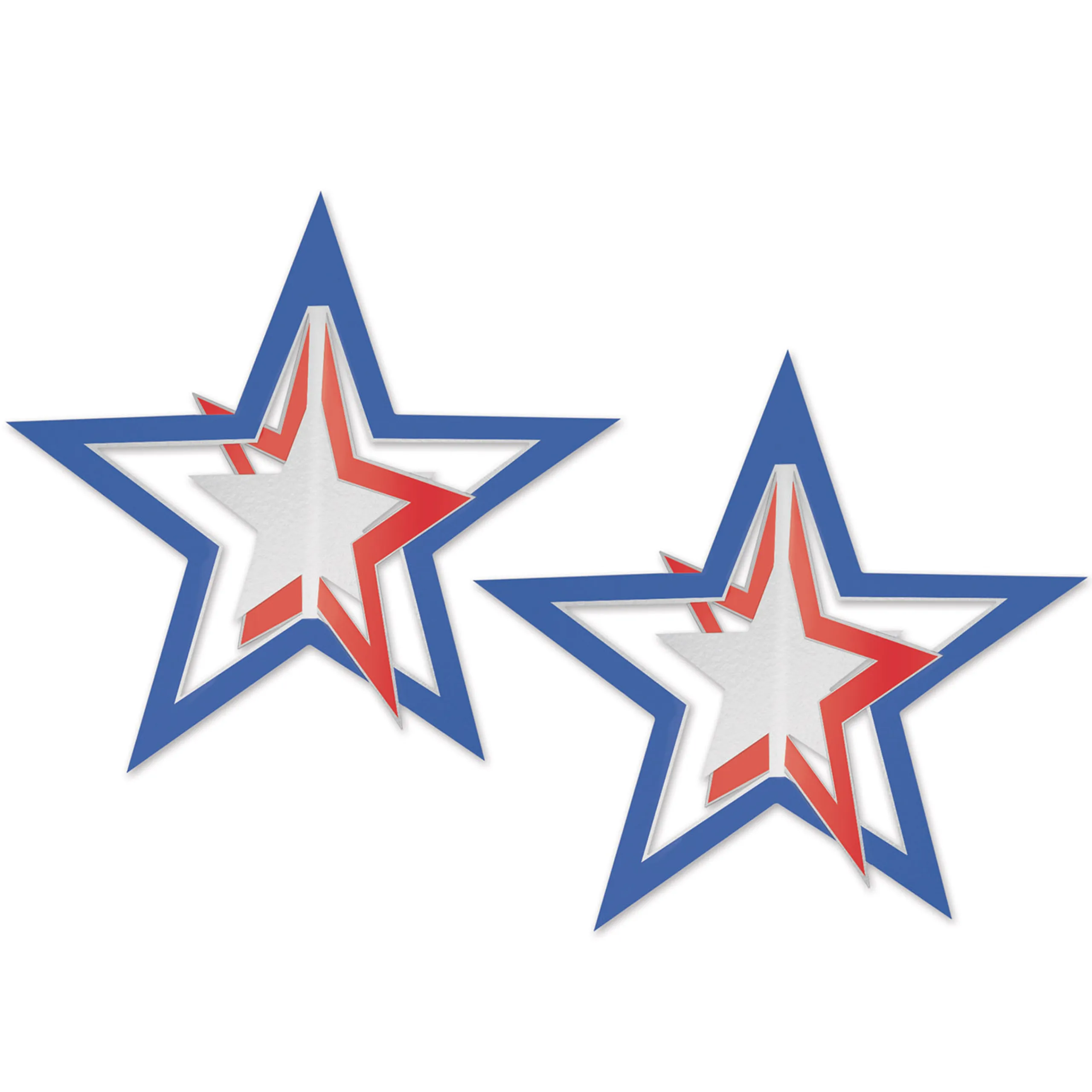 Beistle Club Pack Of 24 Blue, Silver And Red Foil 3-D Hanging Patriotic 4Th Of July Stars