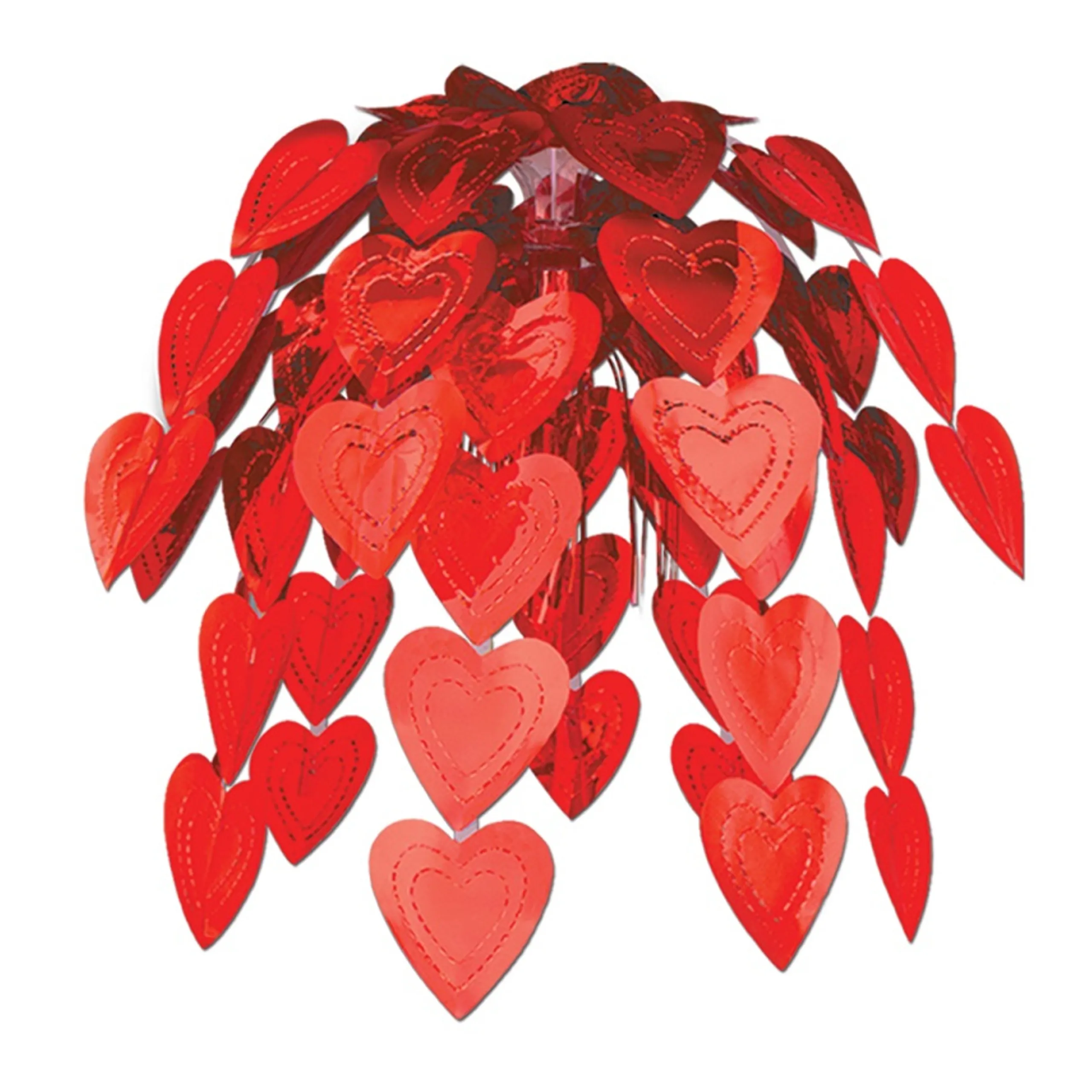 Beistle Pack Of 12 Metallic Red Cascade Valentines Hearts Hanging Party Decorations 24″