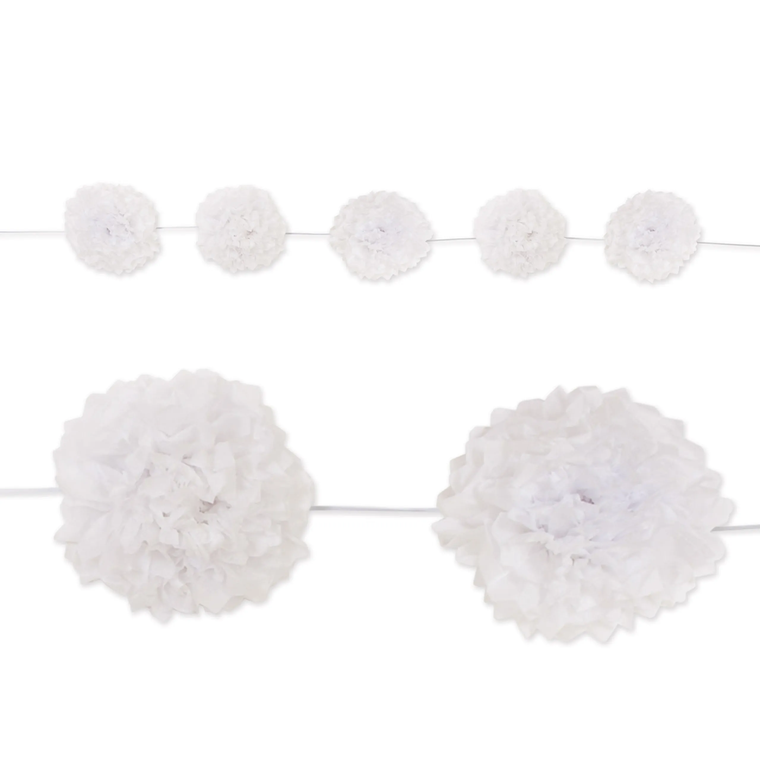 Add Some Sophistication To Your Upcoming Party With This White Tissue Flower Garland, Perfect Decoration For Wedding Receptions Or Any Event Utilizing A White Color Scheme