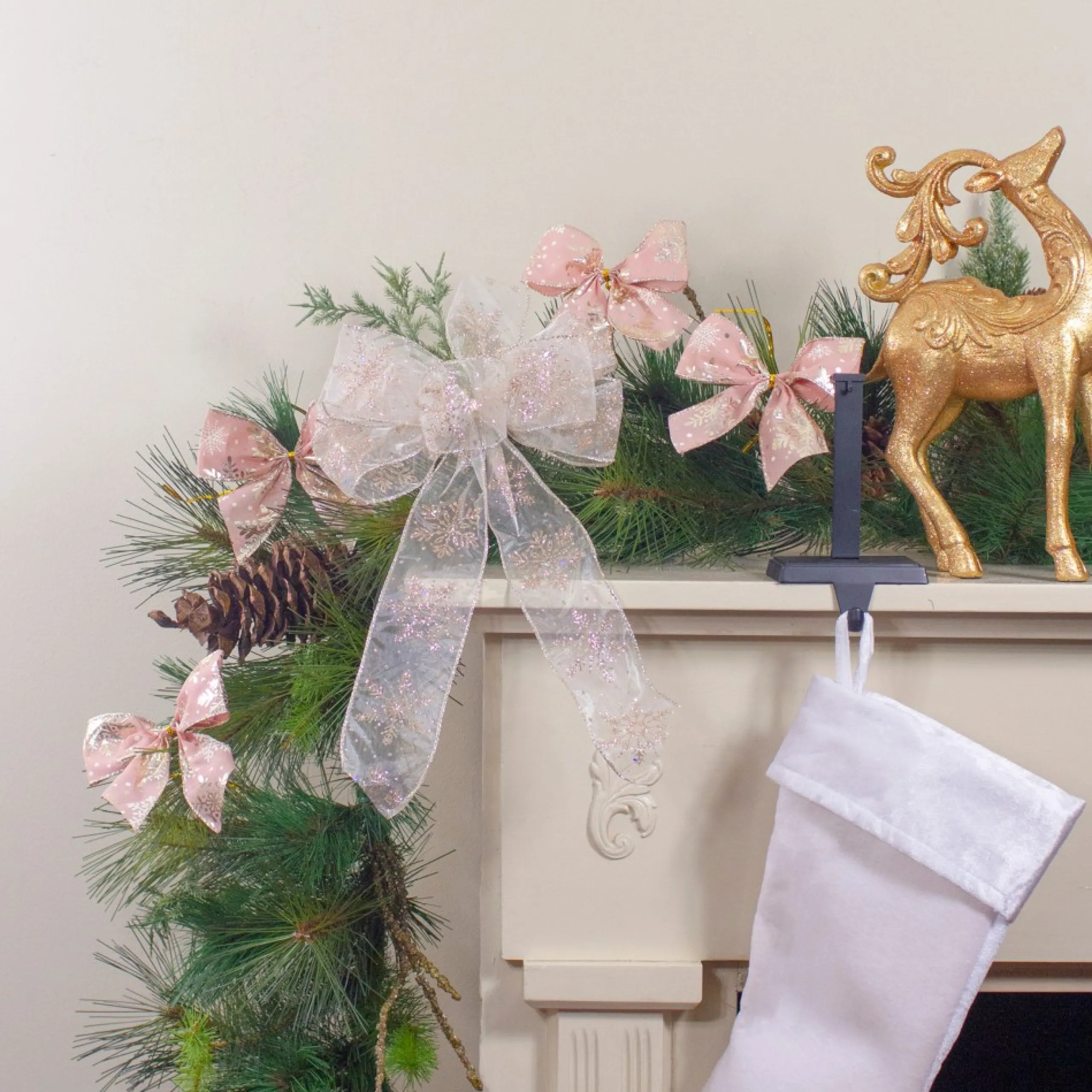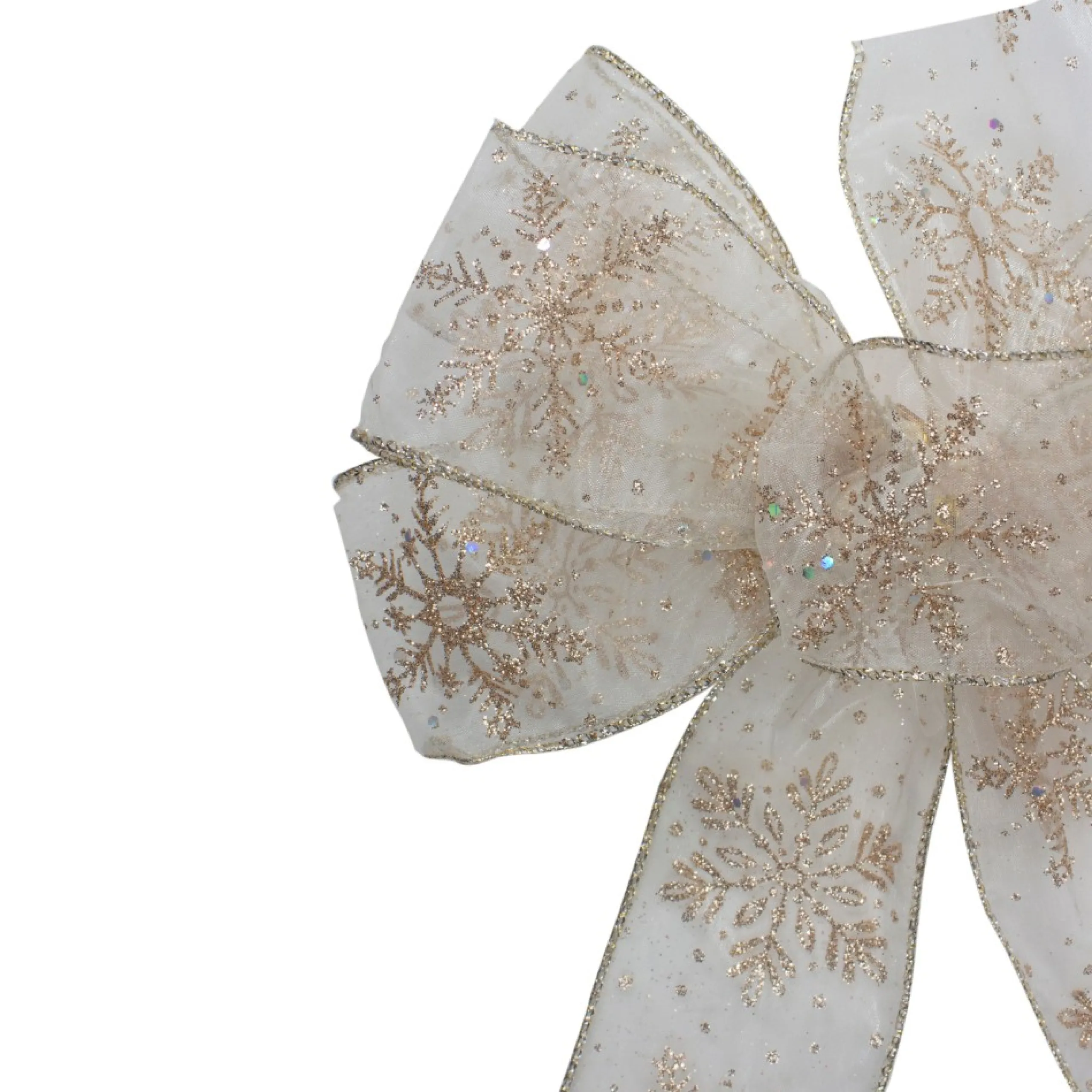 Bows*Northlight 14″ X 9″ Sheer And Gold Snowflake 6 Loop Christmas Bow Decoration
