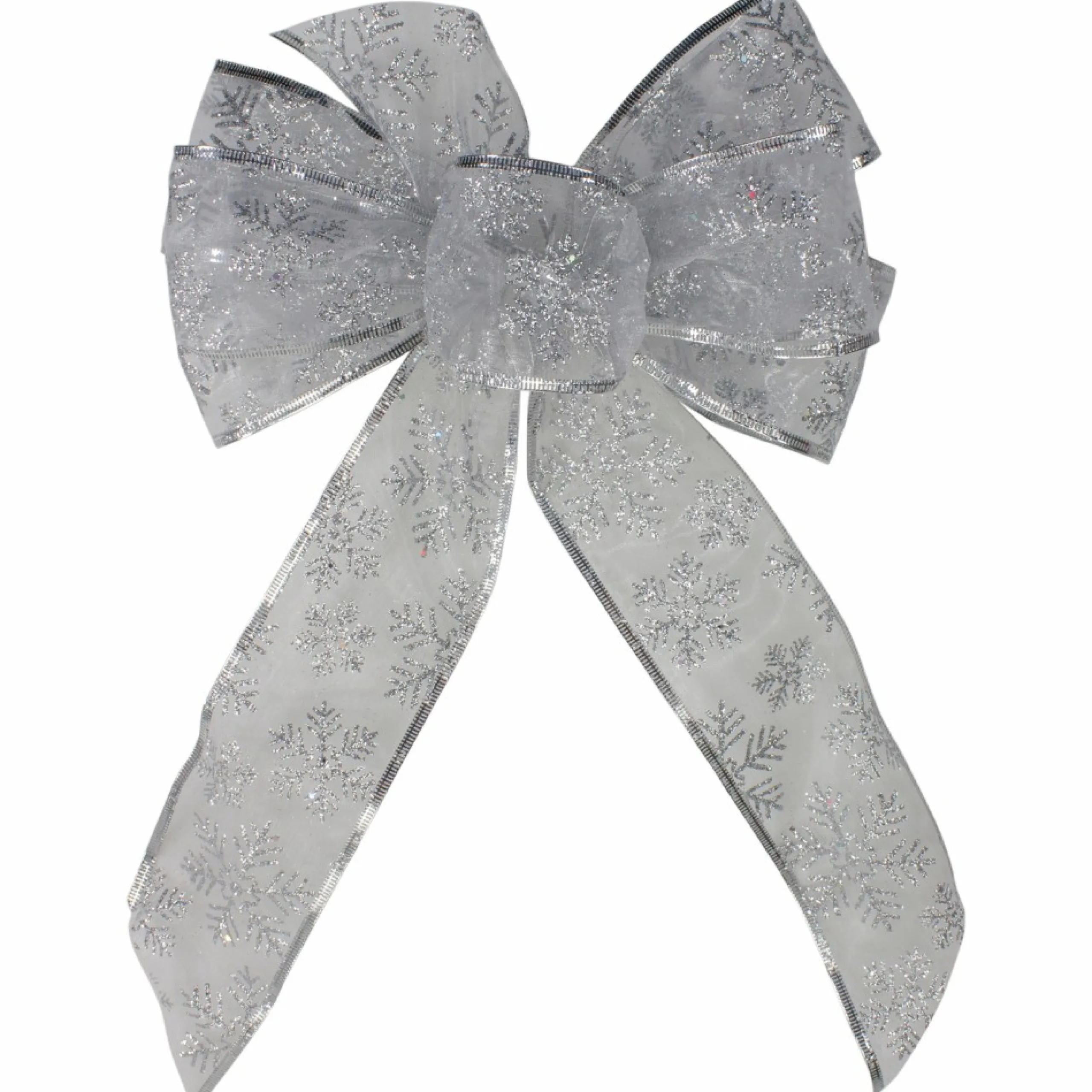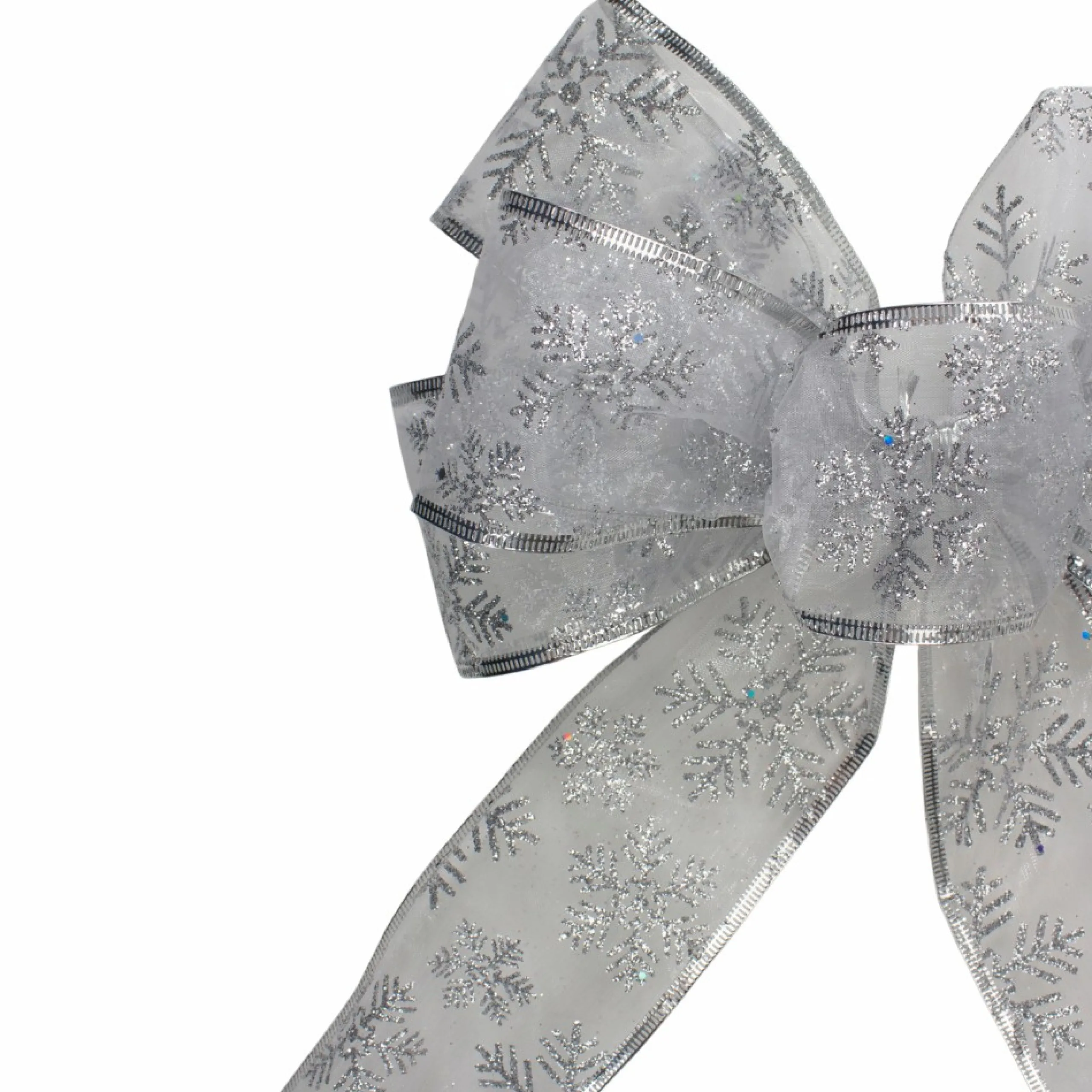 Bows*Northlight 14″ X 9″ Sheer Silver Snowflake 6 Loop Christmas Bow Decoration