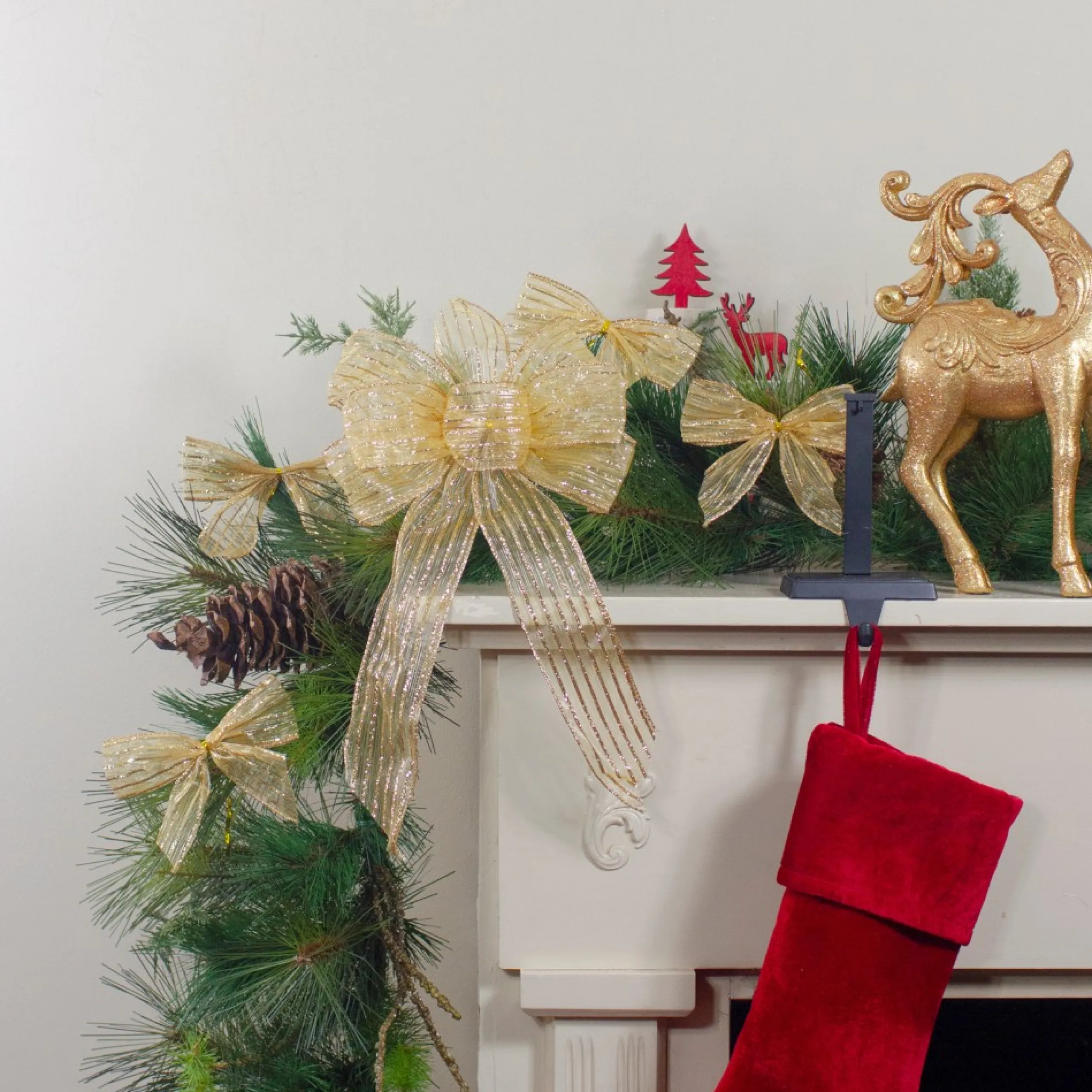 Bows*Northlight Pack Of 6 Gold Glitter Striped 2 Loop Christmas Bow Decorations 5.5″