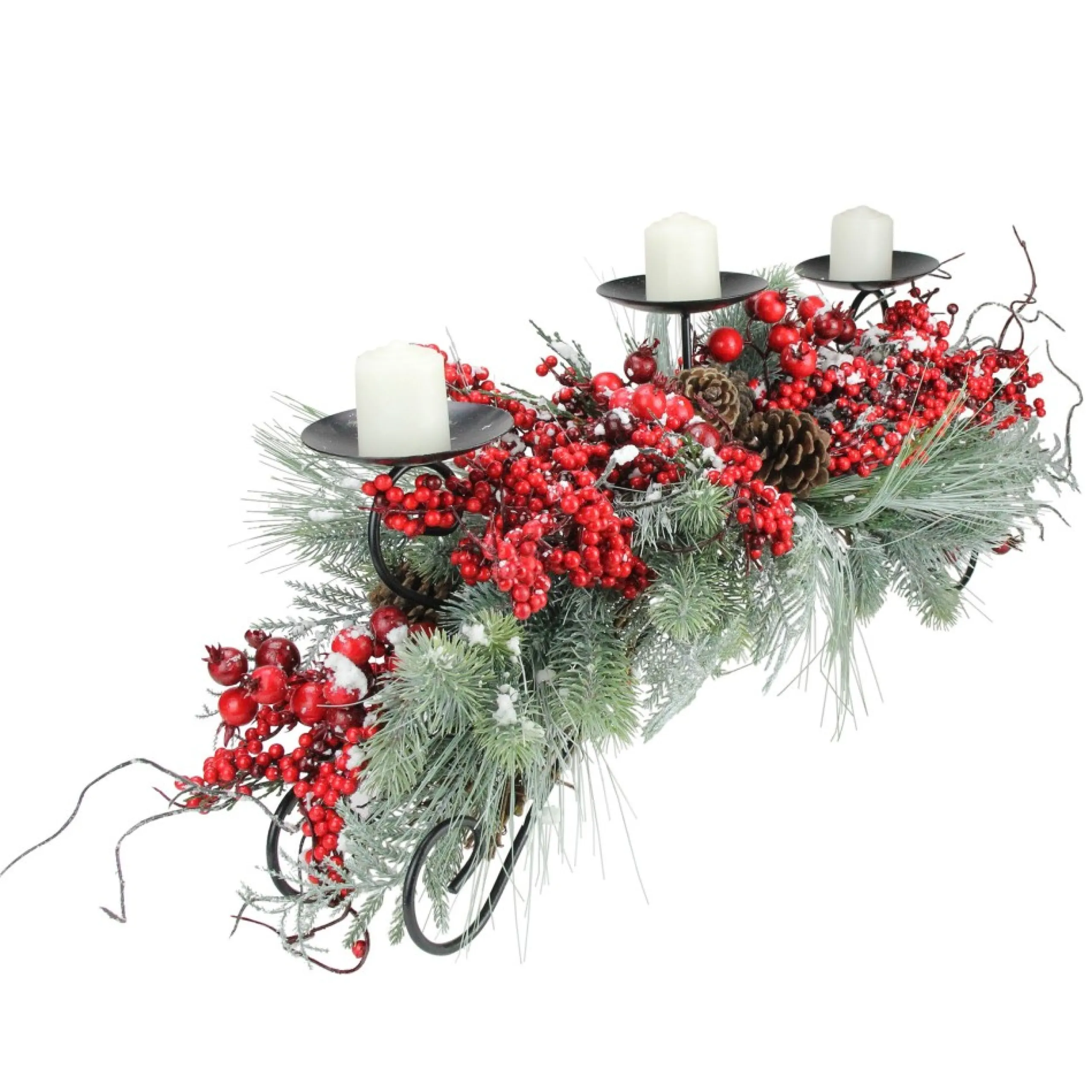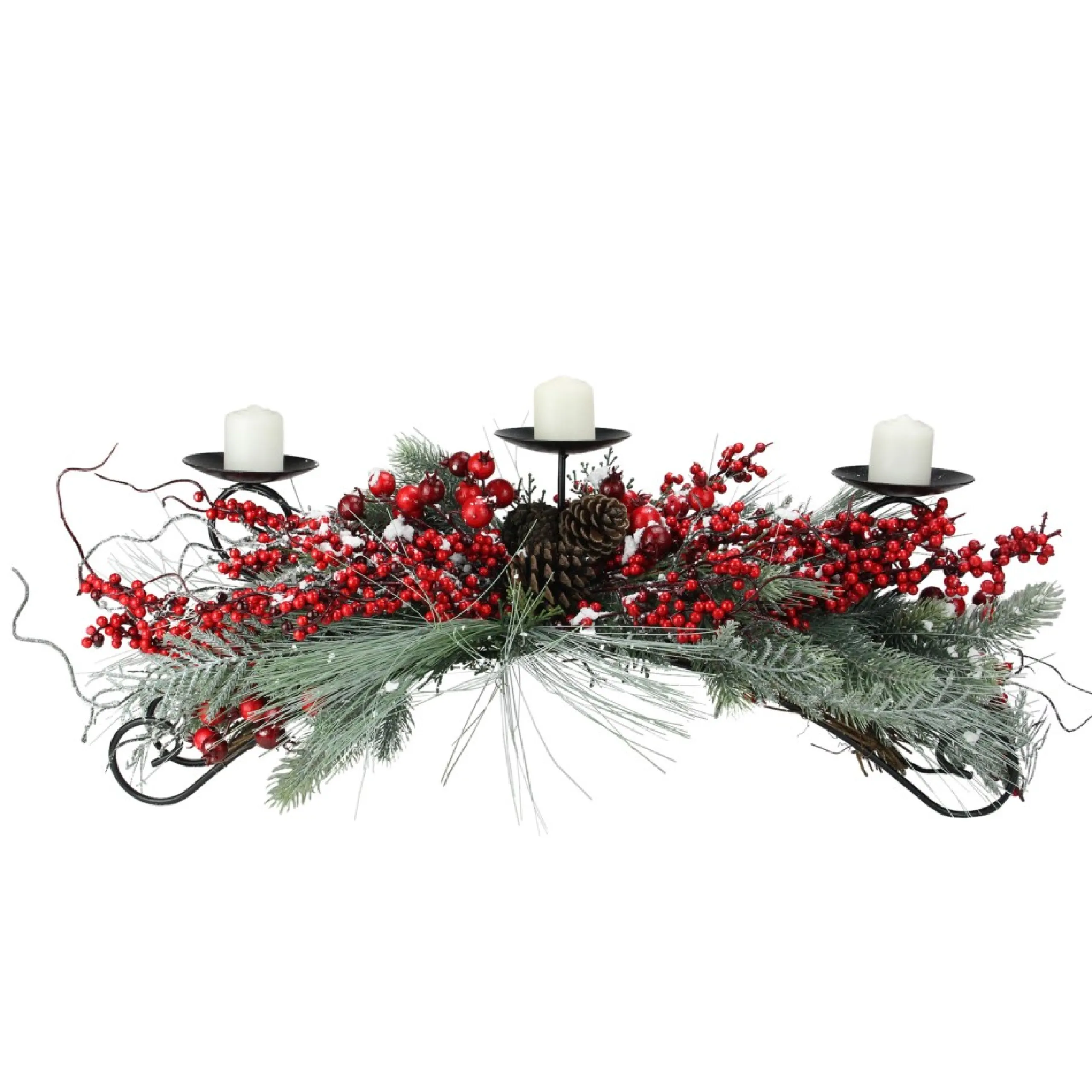 Candles & Holders*Melrose 30″ Red Frosted Berry And Pine Needle Christmas Candle Holder