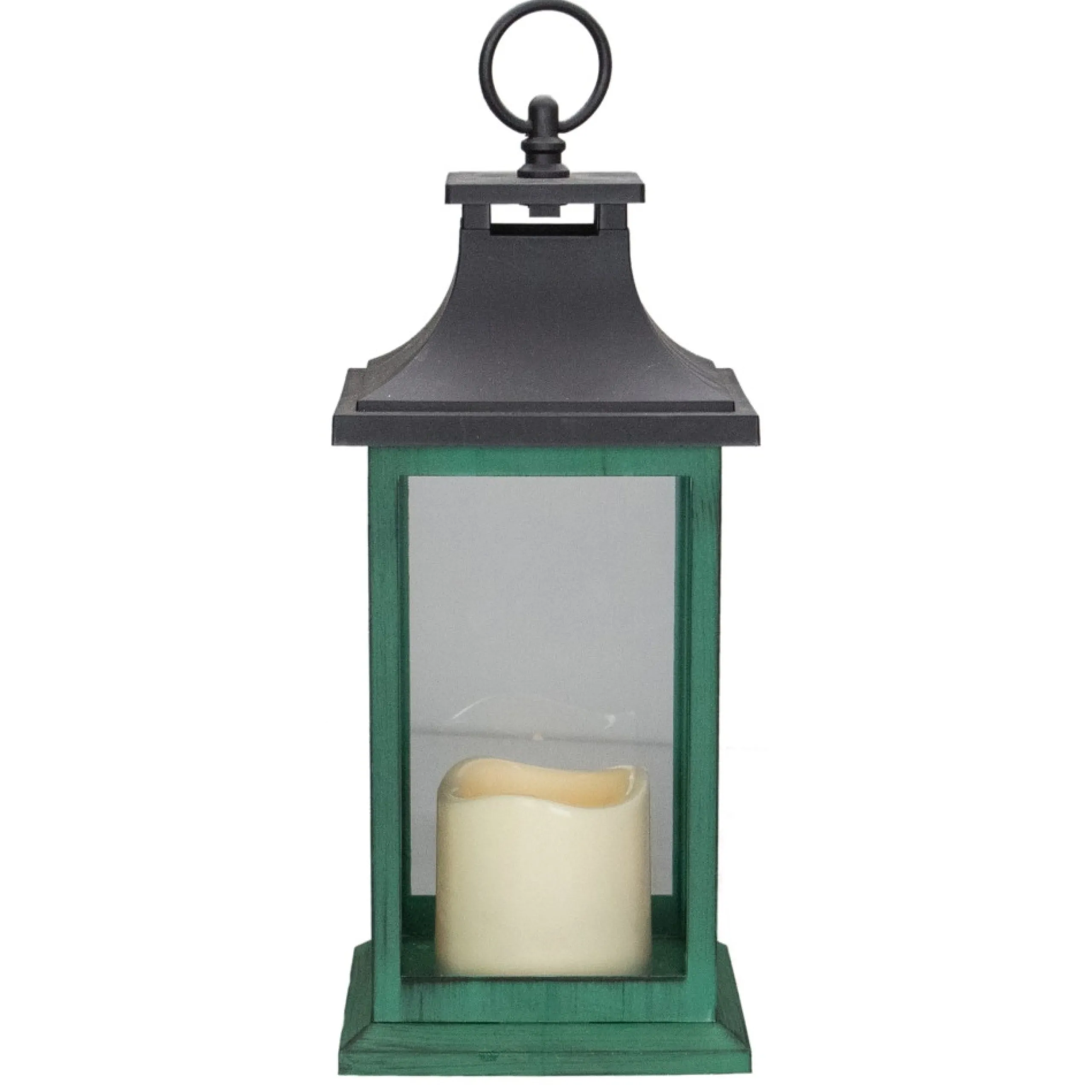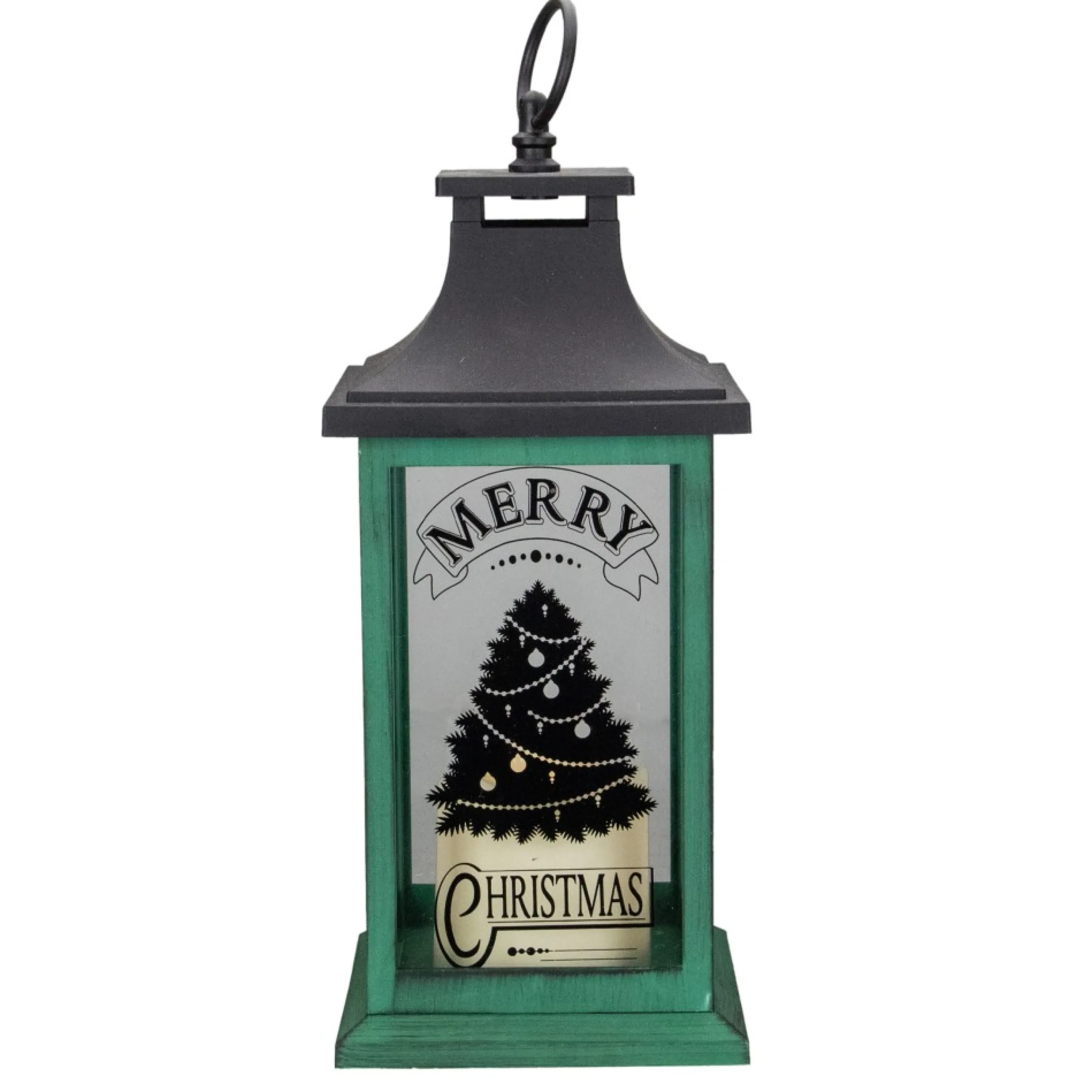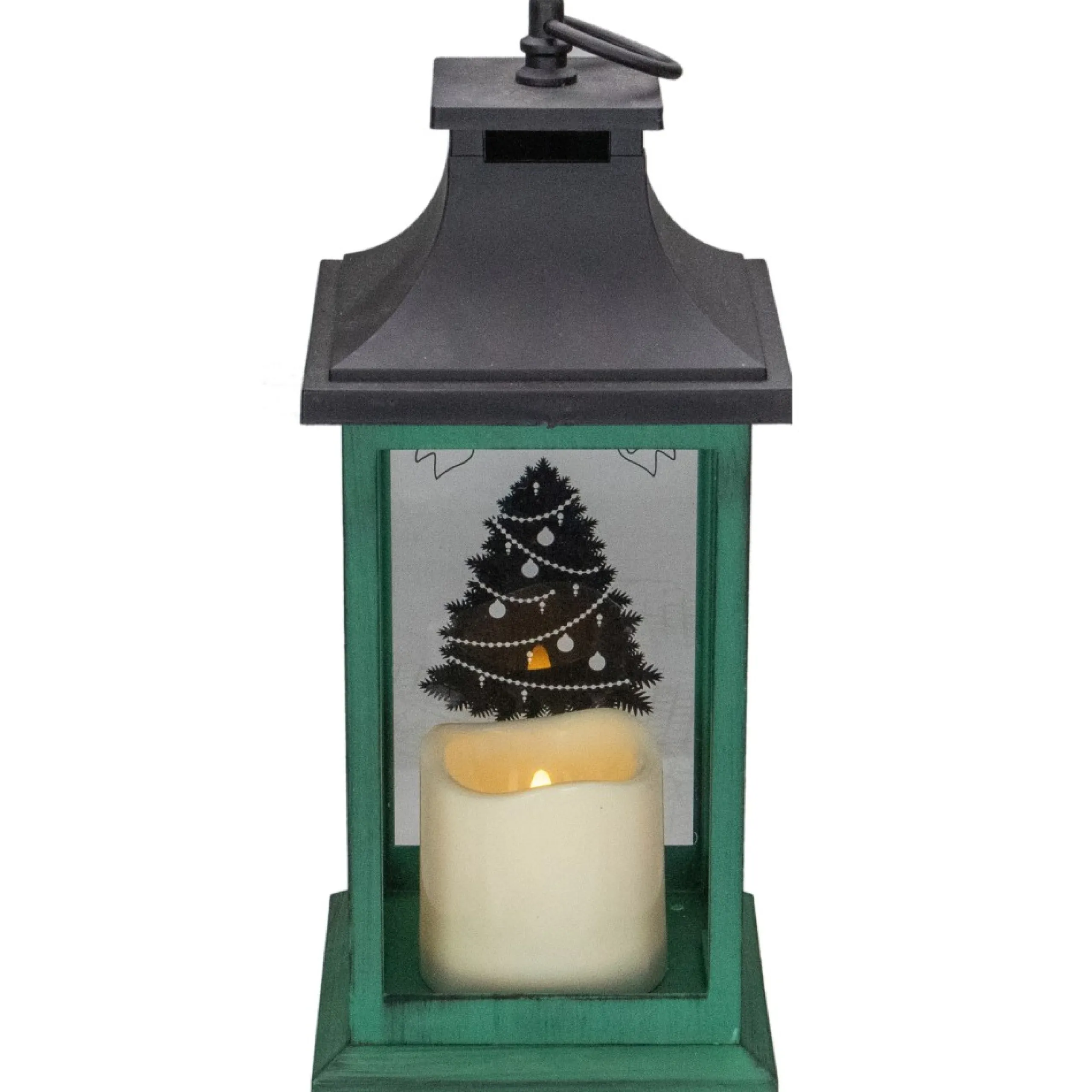 Candles & Holders*Northlight 12″ Green And Black Led Candle With Christmas Tree Tabletop Lantern